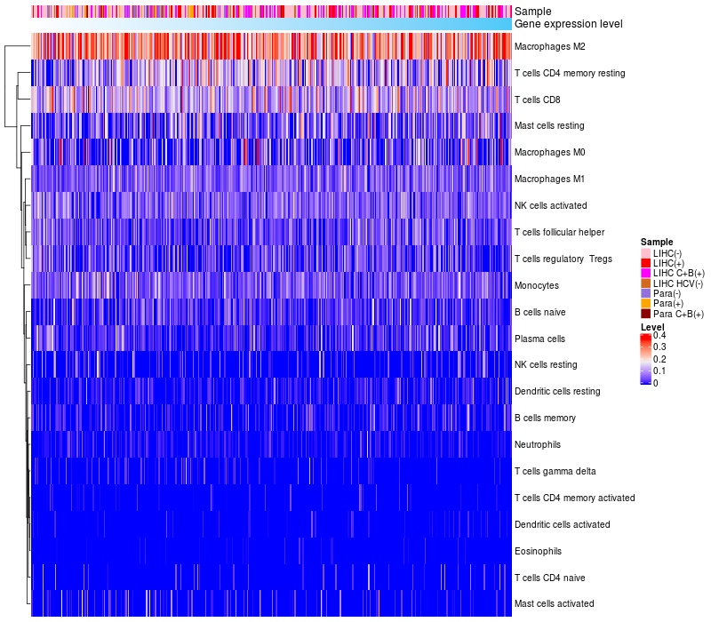 Liver hepatocellular carcinoma HCV (HBV+)(86), Liver hepatocellular carcinoma HCV (HBV-)(19), Liver hepatocellular carcinoma (HBV+)(209), Liver hepatocellular carcinoma (HBV+)(60), Paracancerous HCV (HBV+)(4), Paracancerous (HBV-)(28), Paracancerous (HBV+)(18) |