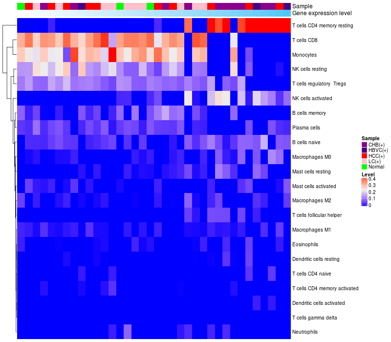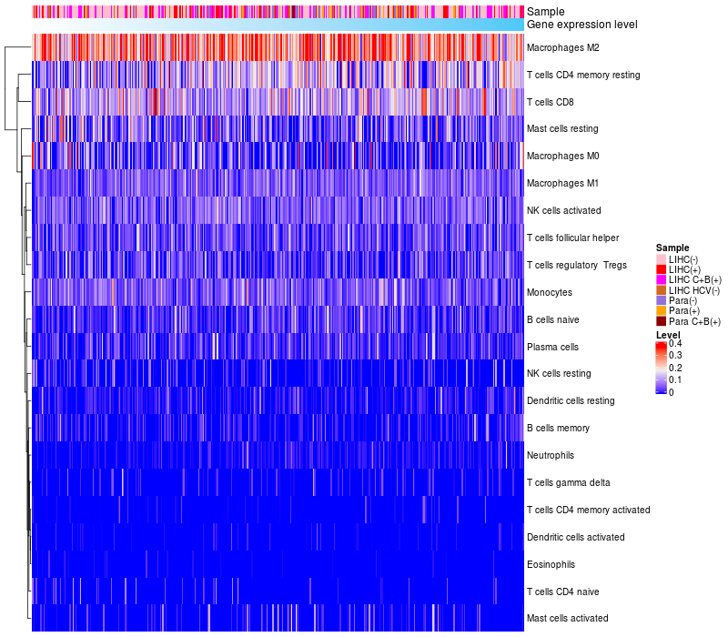 Liver hepatocellular carcinoma HCV (HBV+)(86), Liver hepatocellular carcinoma HCV (HBV-)(19), Liver hepatocellular carcinoma (HBV+)(209), Liver hepatocellular carcinoma (HBV+)(60), Paracancerous HCV (HBV+)(4), Paracancerous (HBV-)(28), Paracancerous (HBV+)(18) |