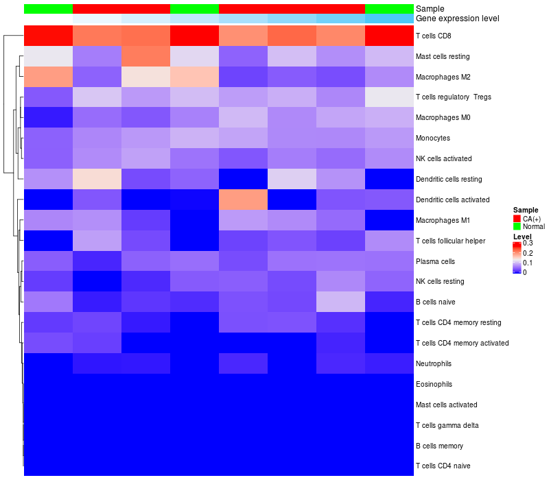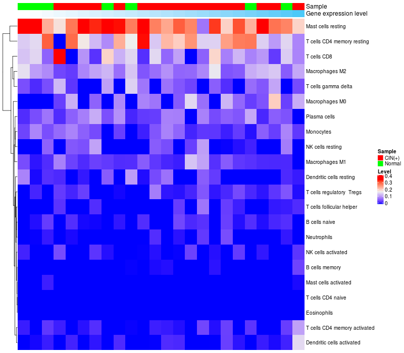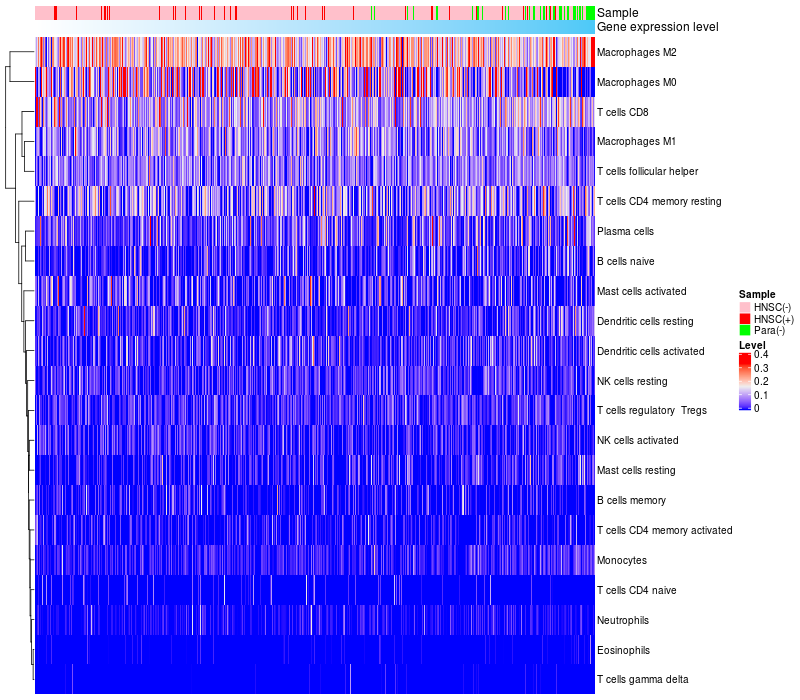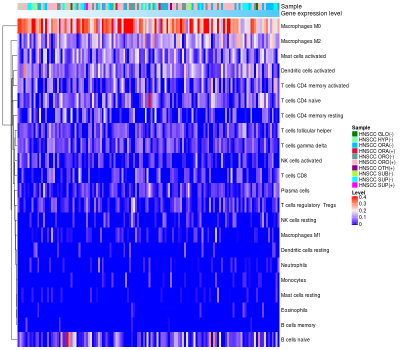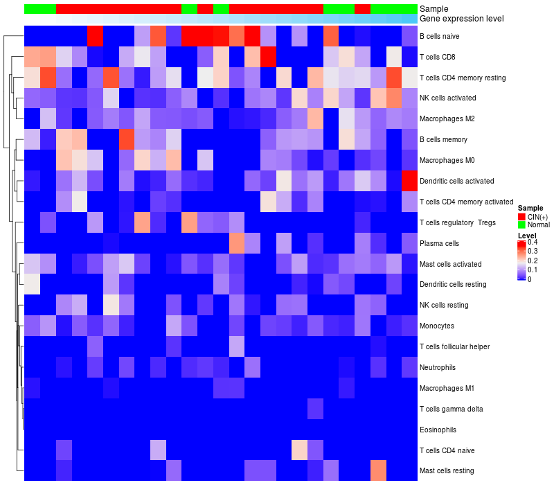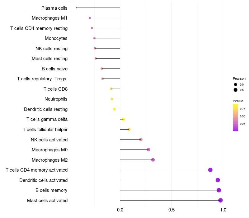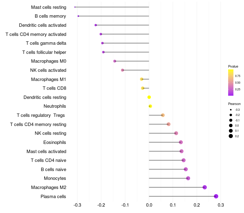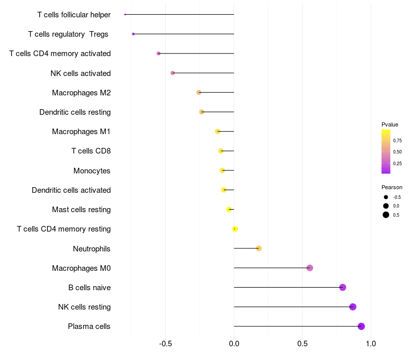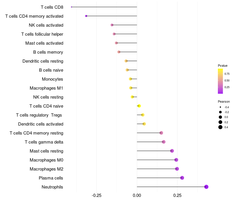 Lollipop of PCDH1 expression and immune infiltrating cell level correlation result in HPV+ samples