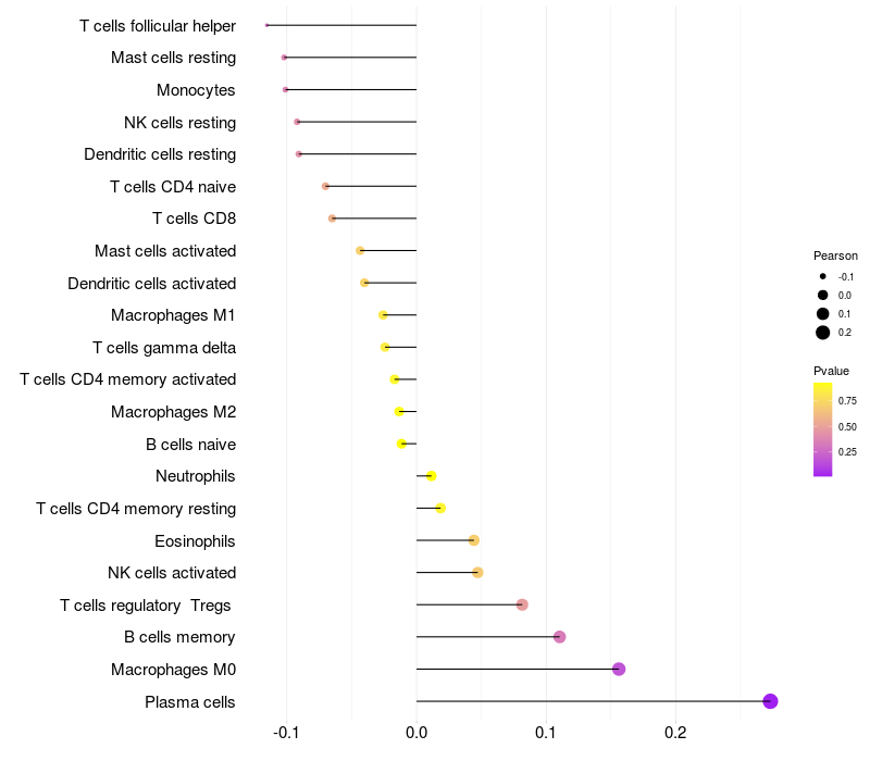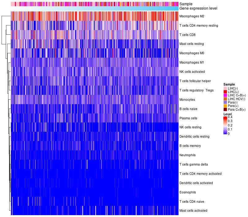 Relationship between gene expression and immune infiltrating cell level