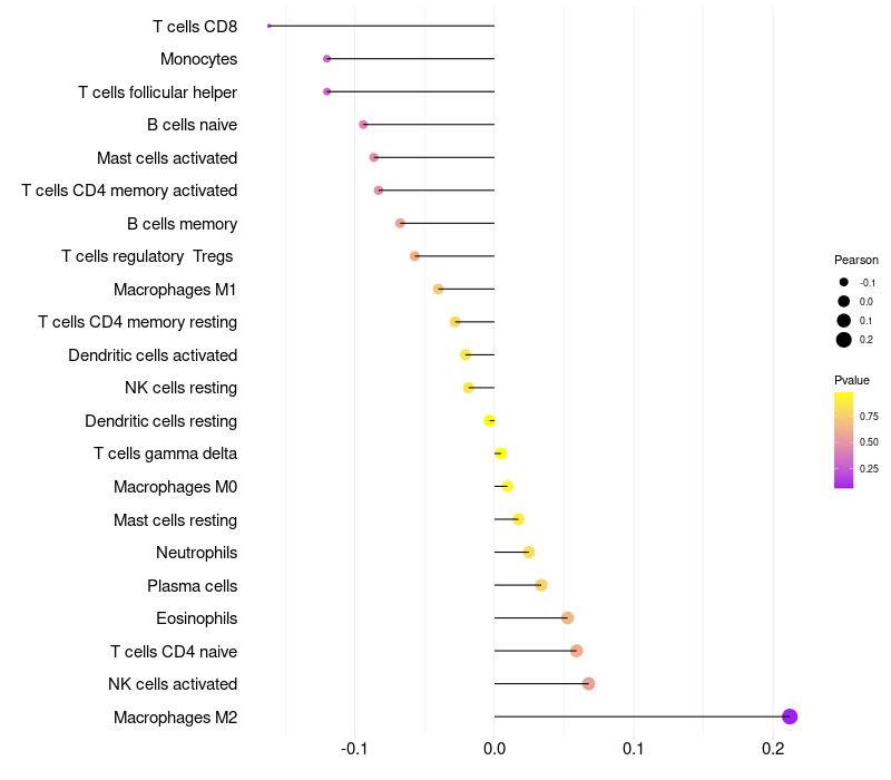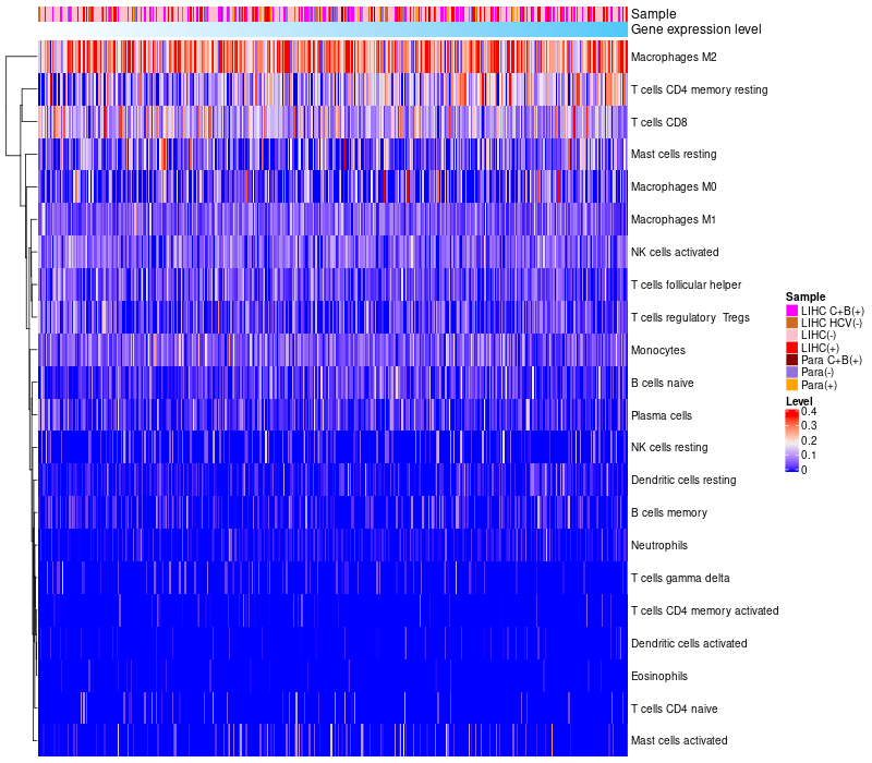 Relationship between gene expression and immune infiltrating cell level