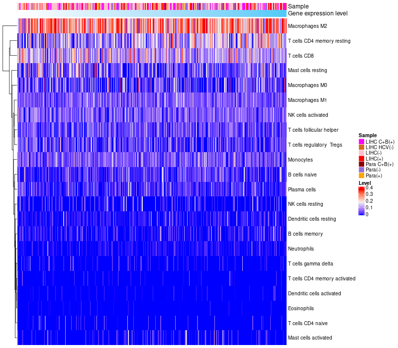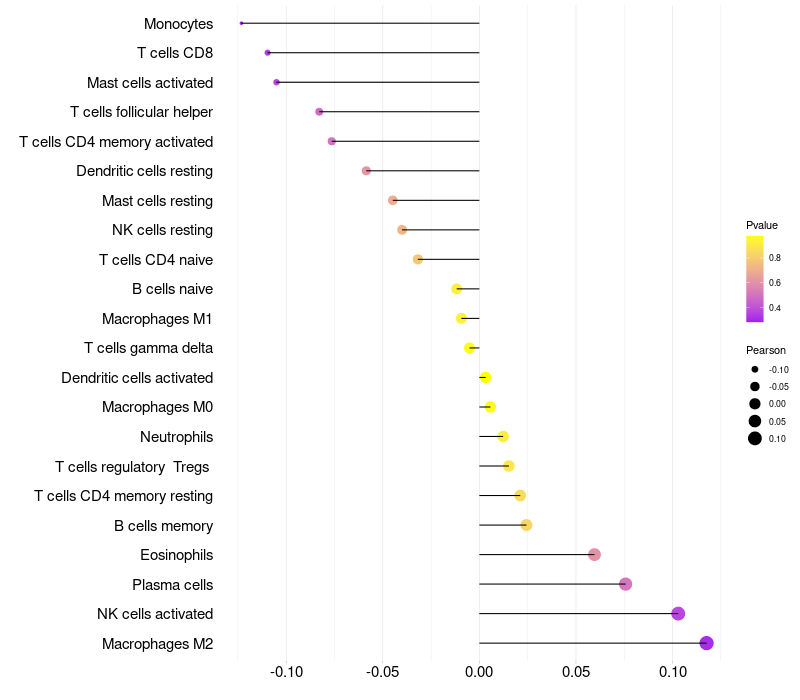 Relationship between gene expression and immune infiltrating cell level
