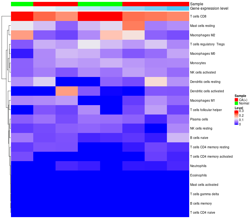 Lollipop of PCGEM1 expression and immune infiltrating cell level correlation result in HPV+ samples