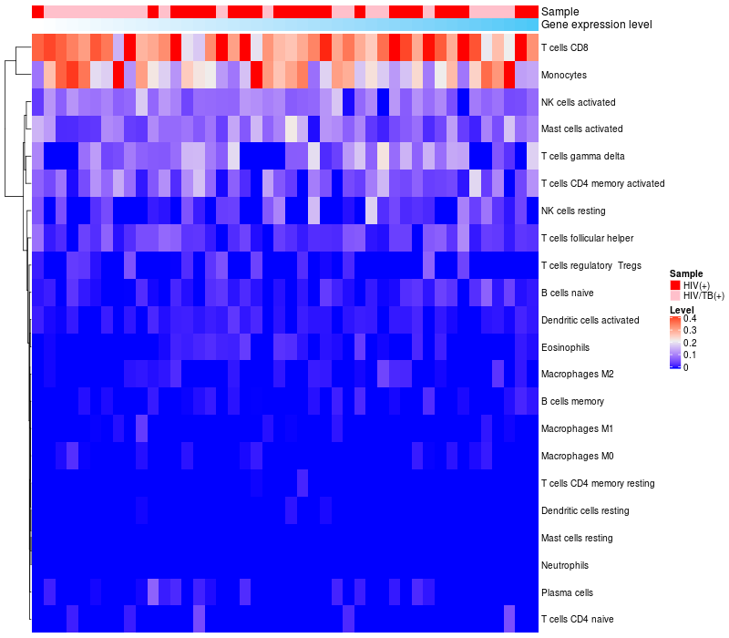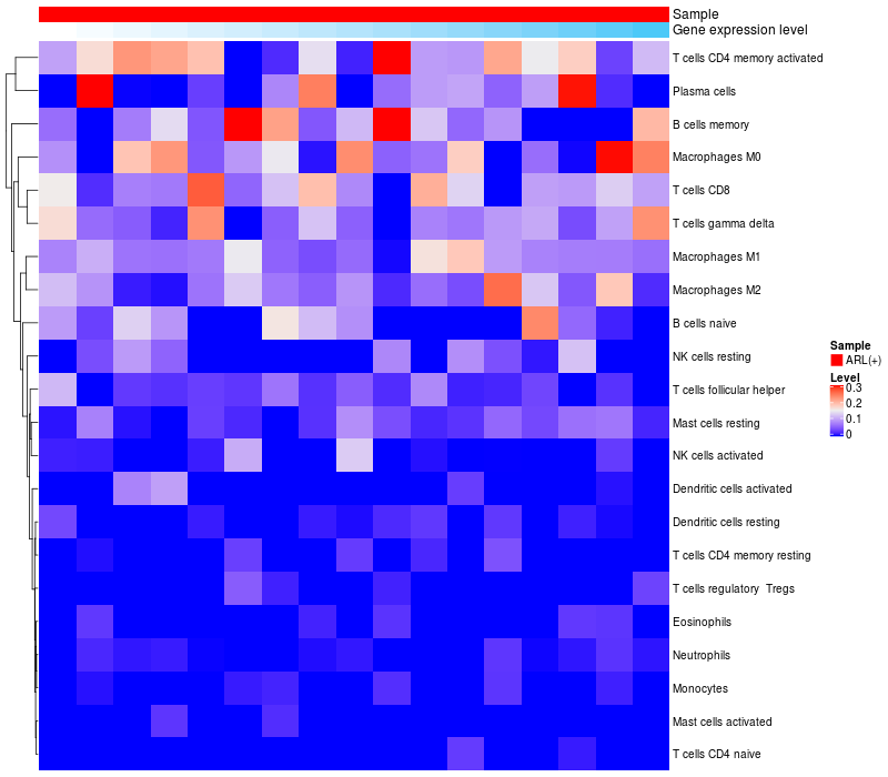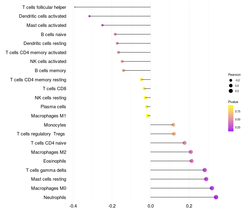 Relationship between gene expression and immune infiltrating cell level