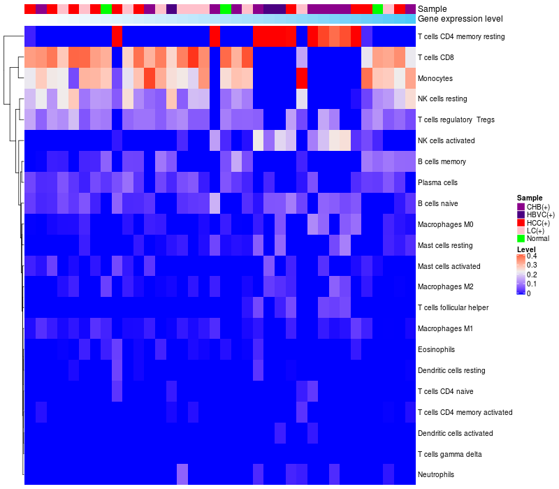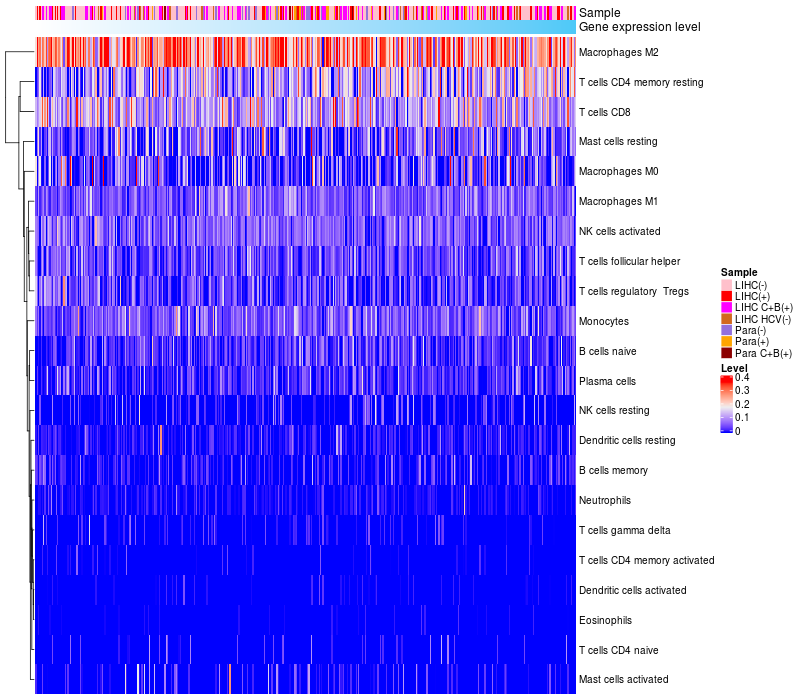 Liver hepatocellular carcinoma HCV (HBV+)(86), Liver hepatocellular carcinoma HCV (HBV-)(19), Liver hepatocellular carcinoma (HBV+)(209), Liver hepatocellular carcinoma (HBV+)(60), Paracancerous HCV (HBV+)(4), Paracancerous (HBV-)(28), Paracancerous (HBV+)(18) |