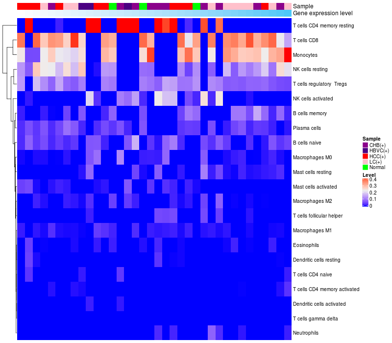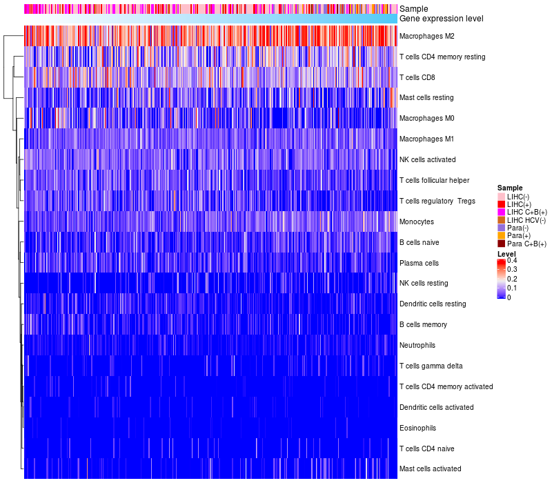 Liver hepatocellular carcinoma HCV (HBV+)(86), Liver hepatocellular carcinoma HCV (HBV-)(19), Liver hepatocellular carcinoma (HBV+)(209), Liver hepatocellular carcinoma (HBV+)(60), Paracancerous HCV (HBV+)(4), Paracancerous (HBV-)(28), Paracancerous (HBV+)(18) |