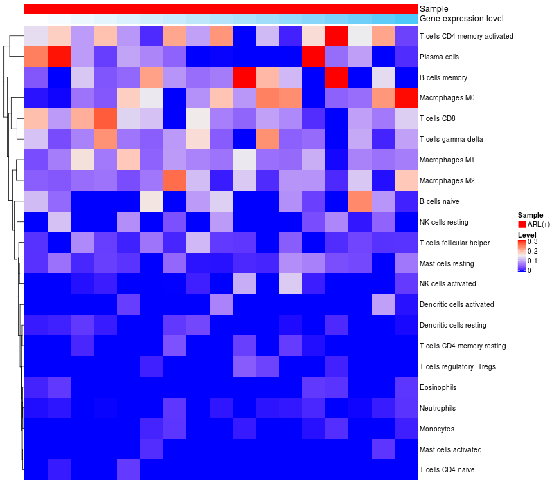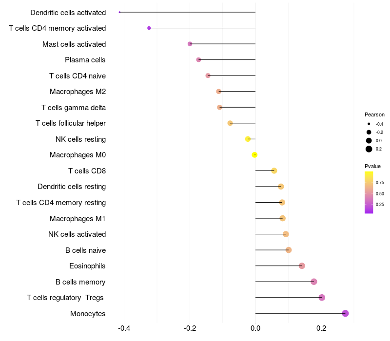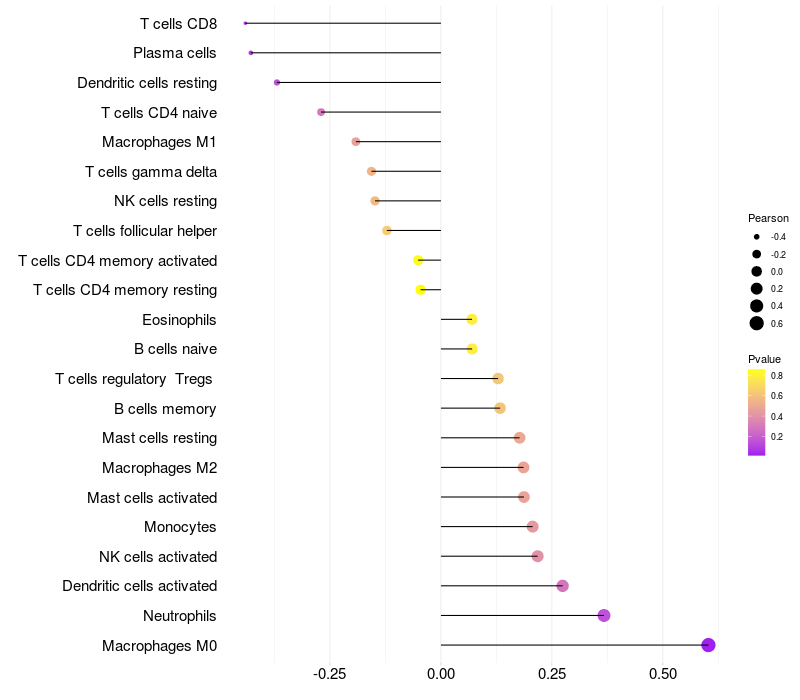 Relationship between gene expression and immune infiltrating cell level