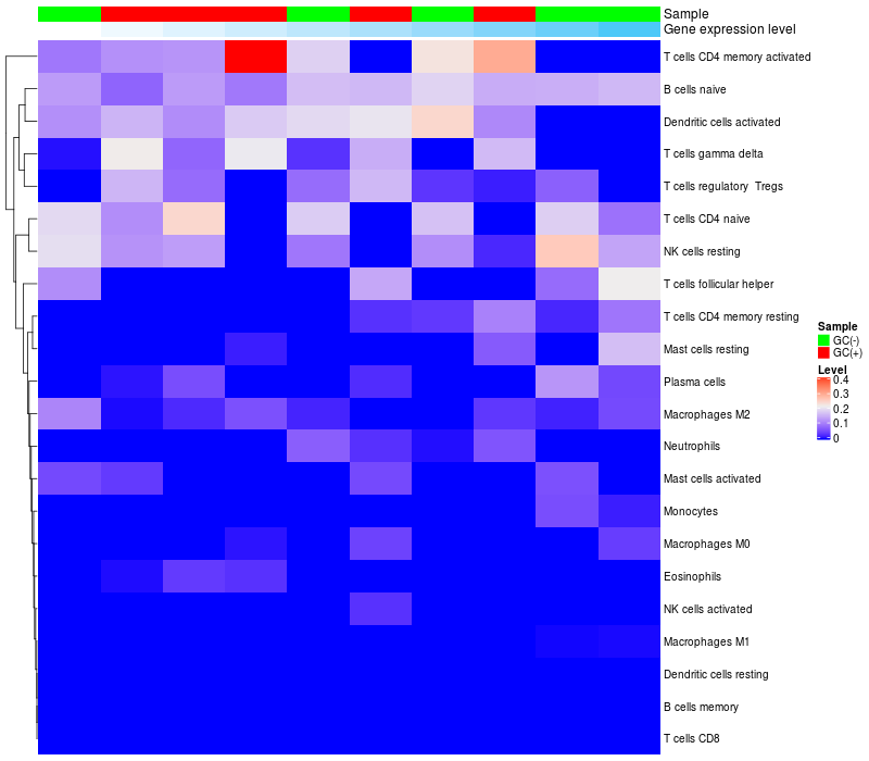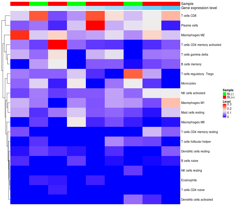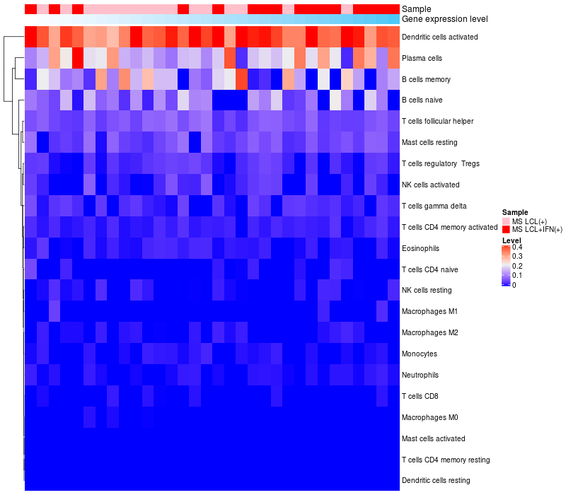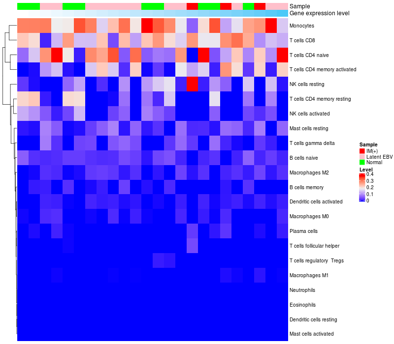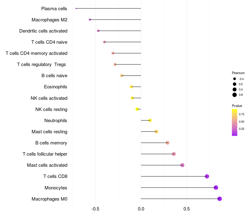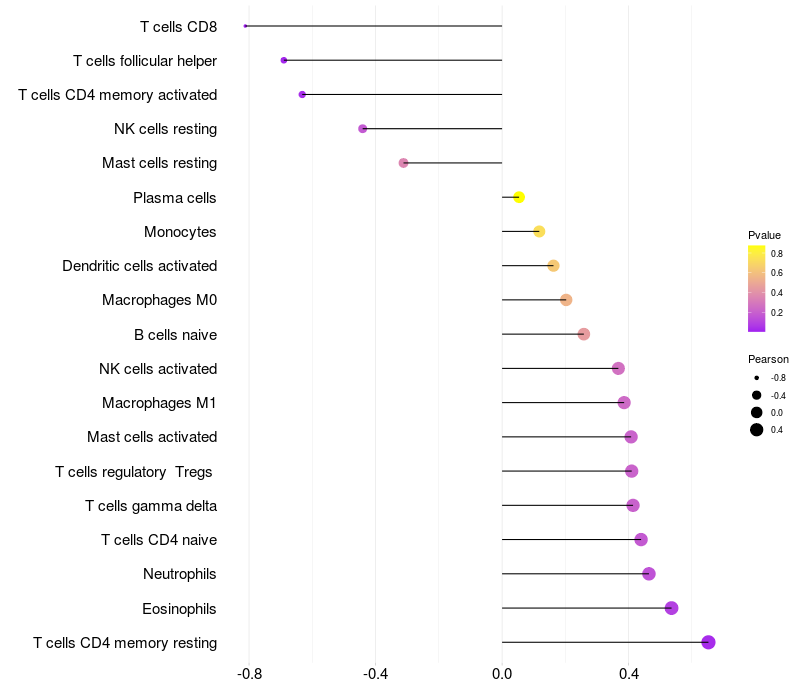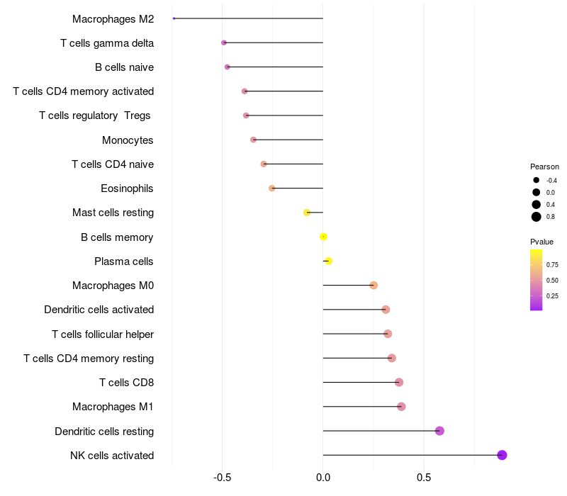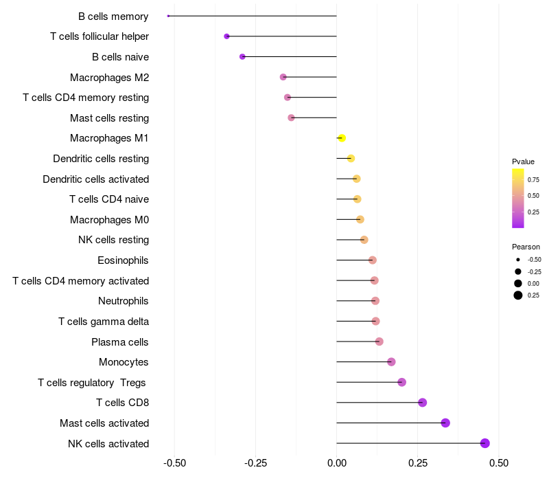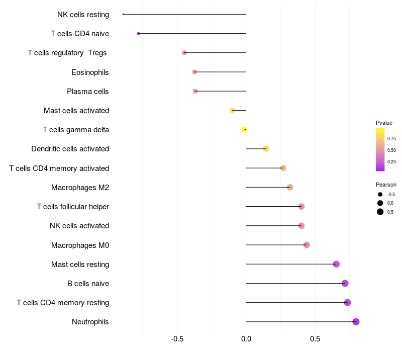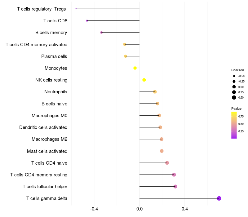 Lollipop of PDE10A expression and immune infiltrating cell level correlation result in EBV+ samples