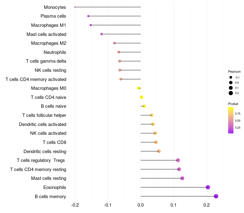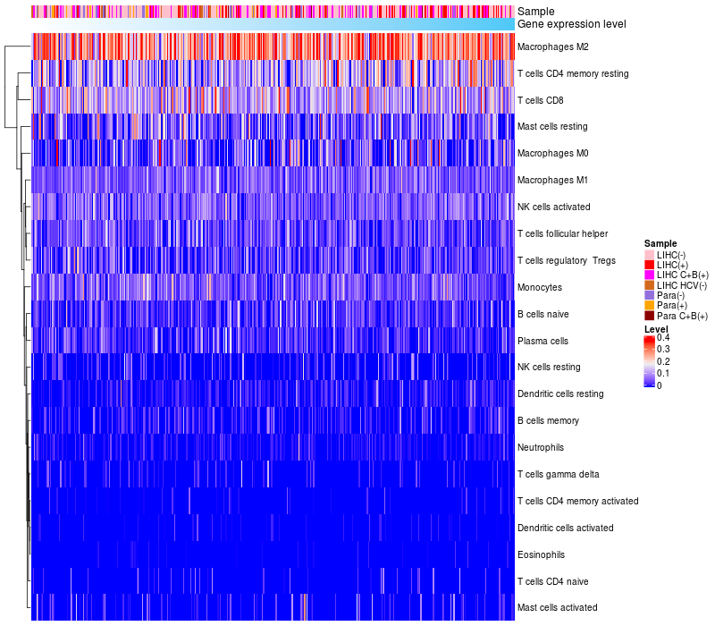 Relationship between gene expression and immune infiltrating cell level