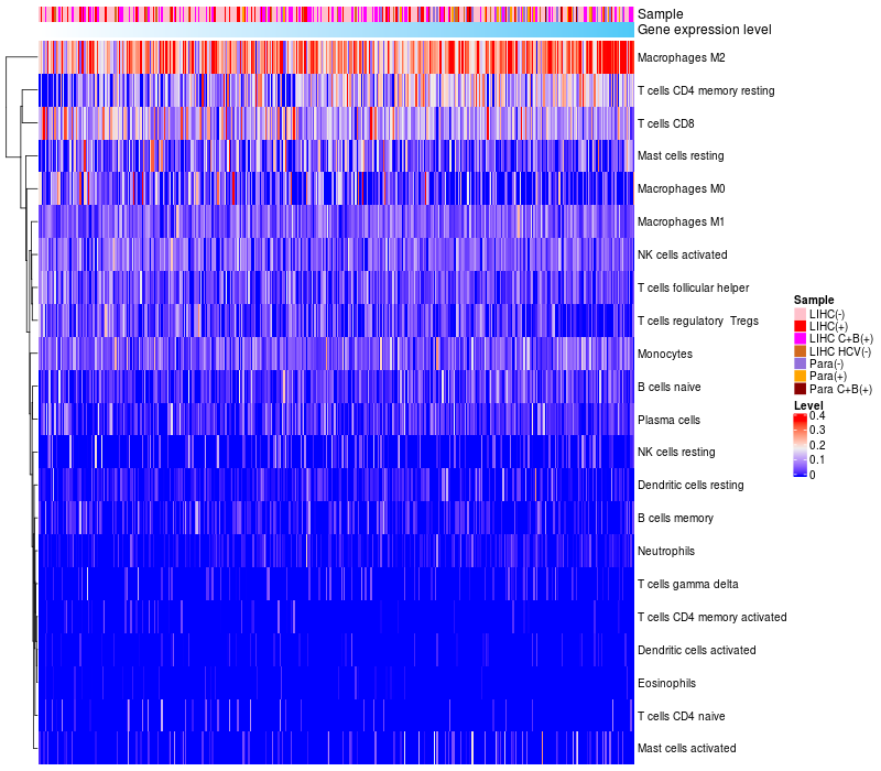 Relationship between gene expression and immune infiltrating cell level