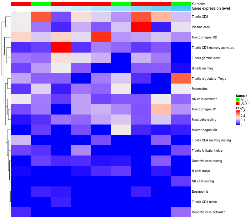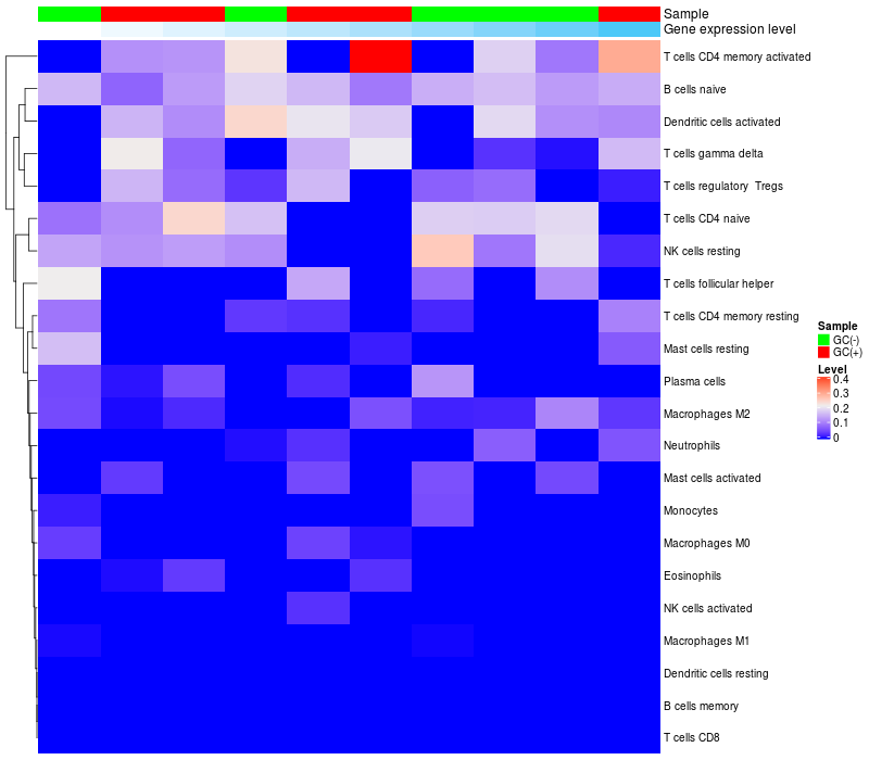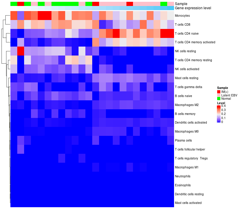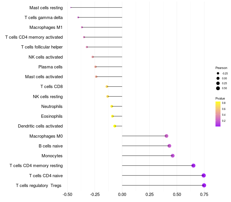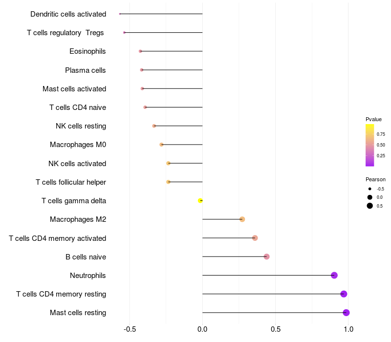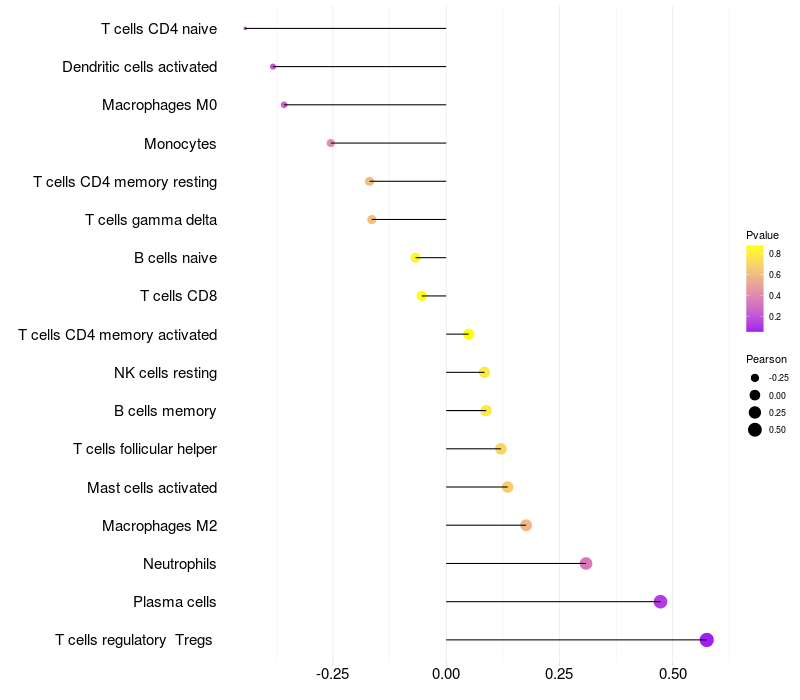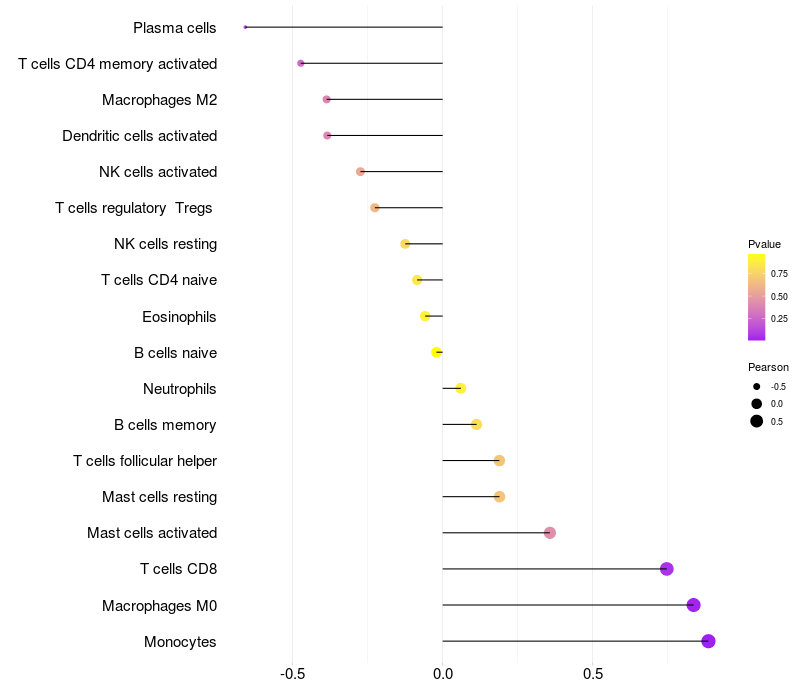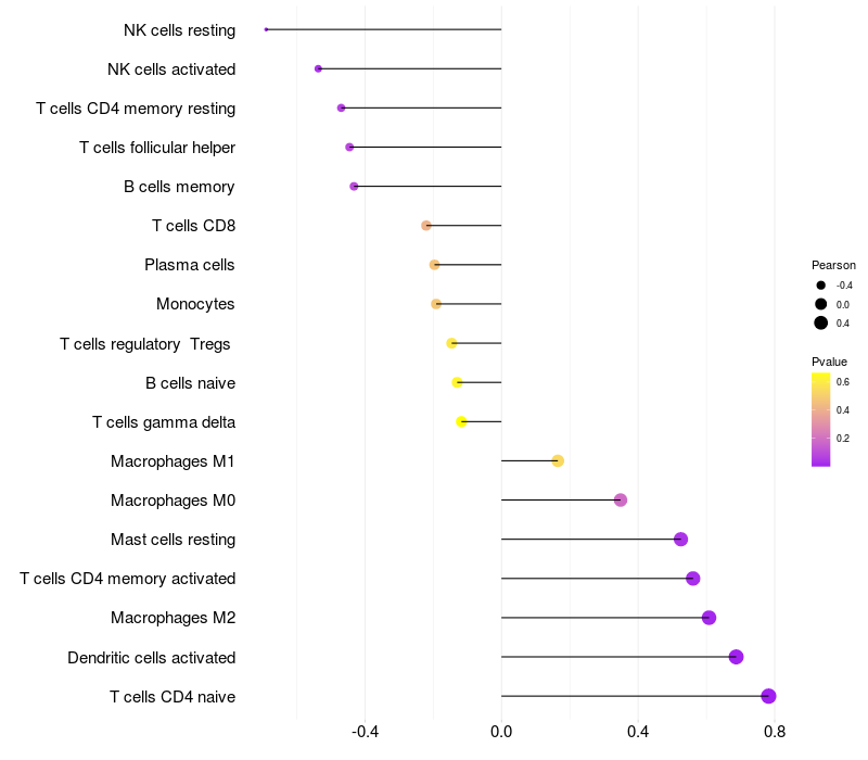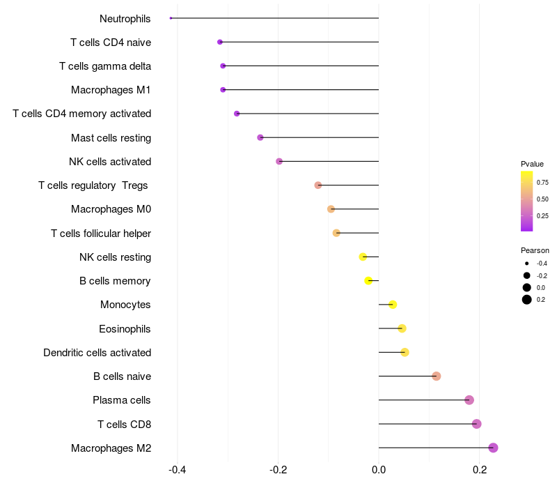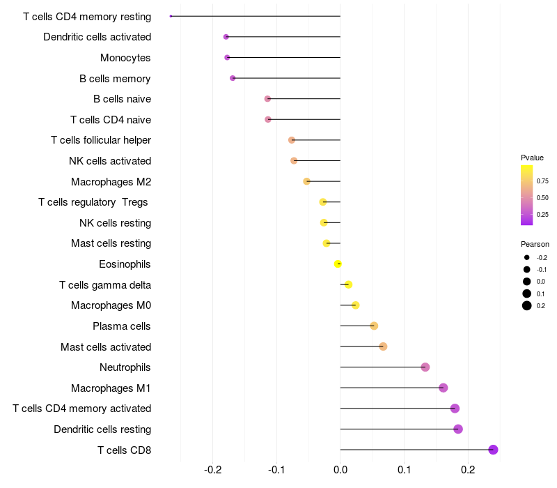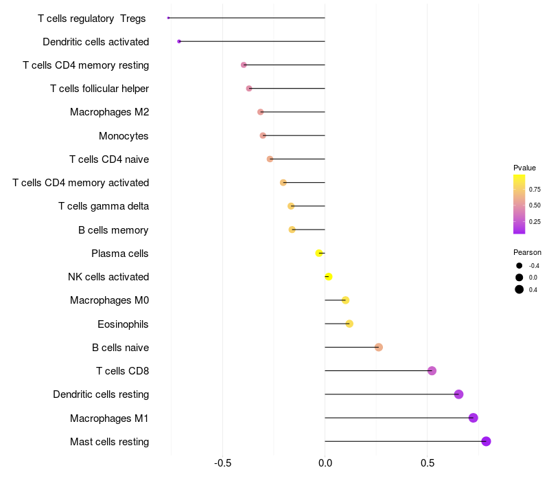 Lollipop of PDE9A expression and immune infiltrating cell level correlation result in EBV+ samples