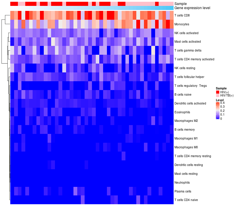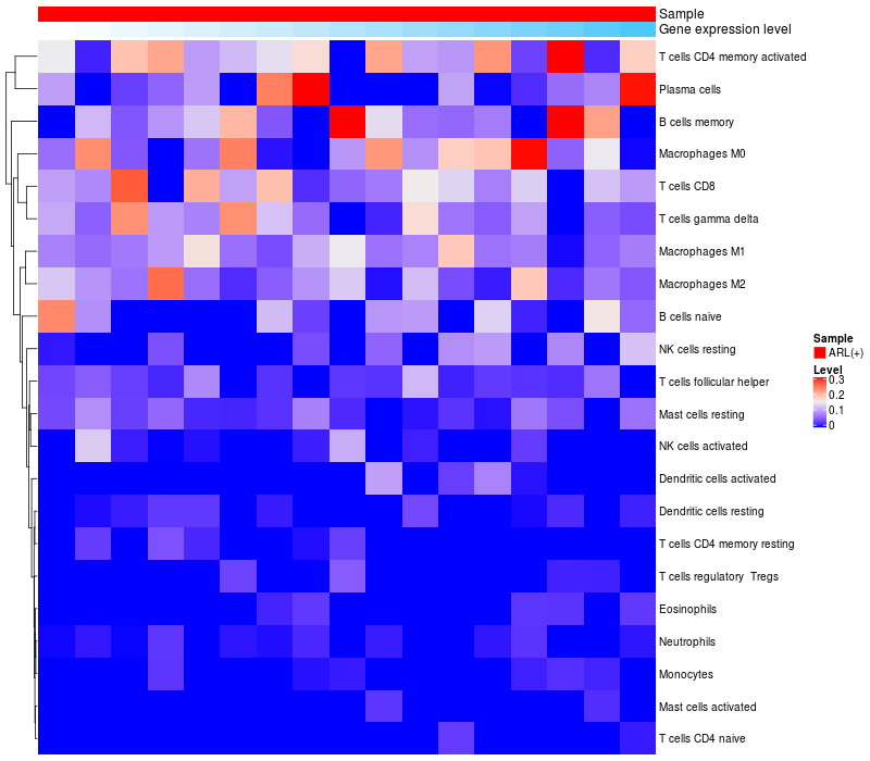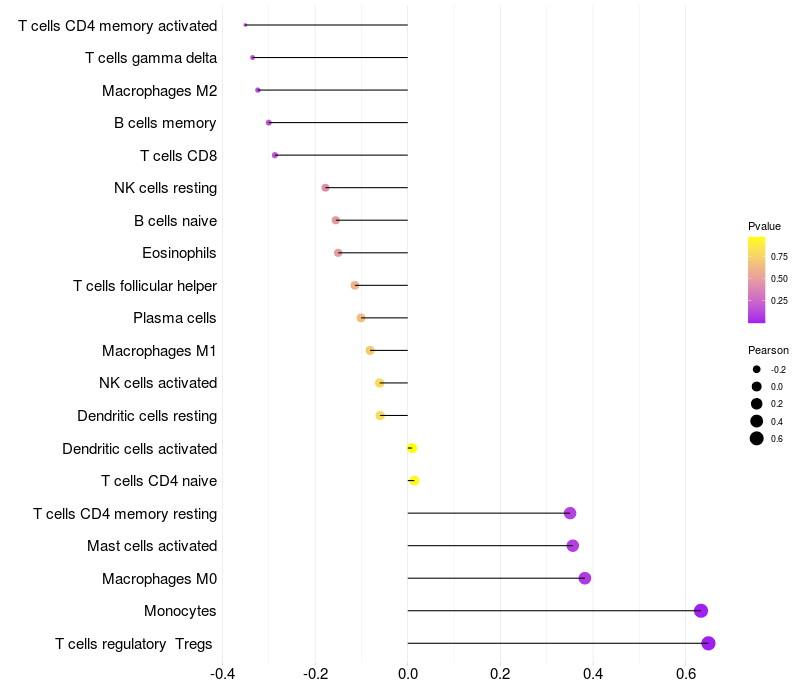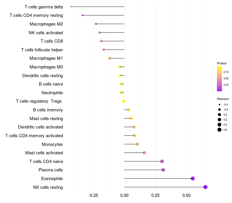 Relationship between gene expression and immune infiltrating cell level