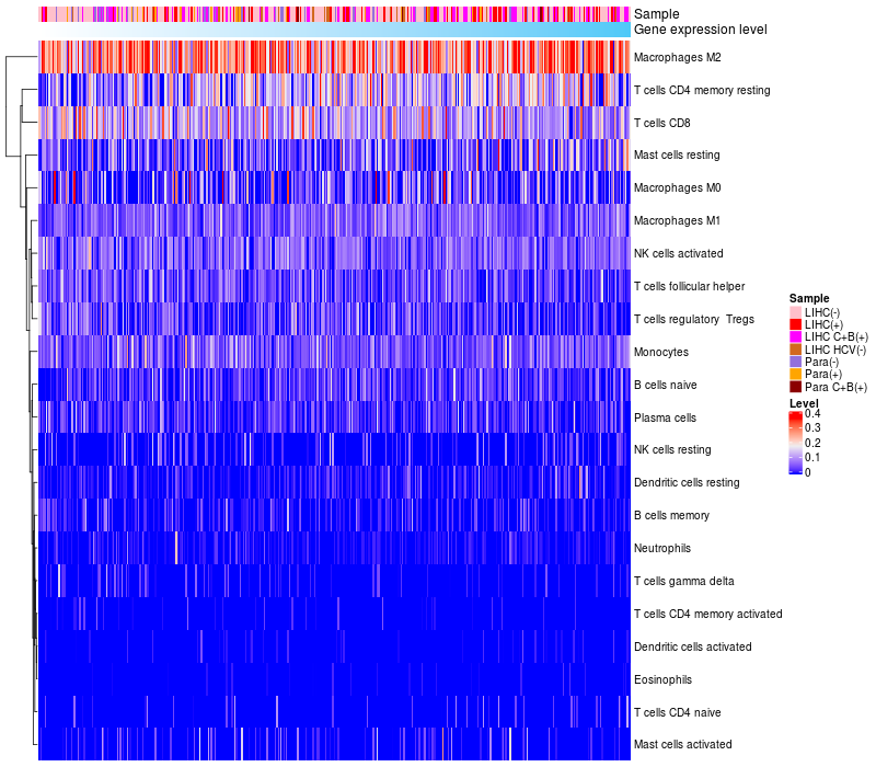 Relationship between gene expression and immune infiltrating cell level