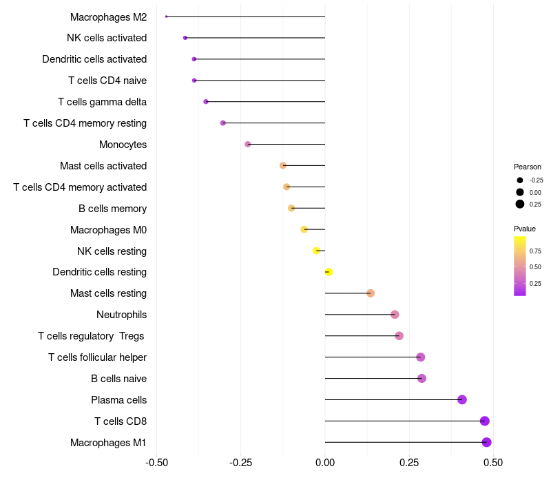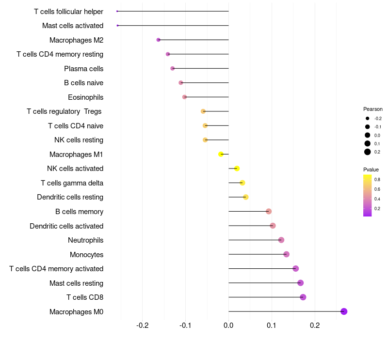 HeatMap of cell type fractions in all samples Lollipop of PDPN expression and immune infiltrating cell level correlation result in HPV+ samples