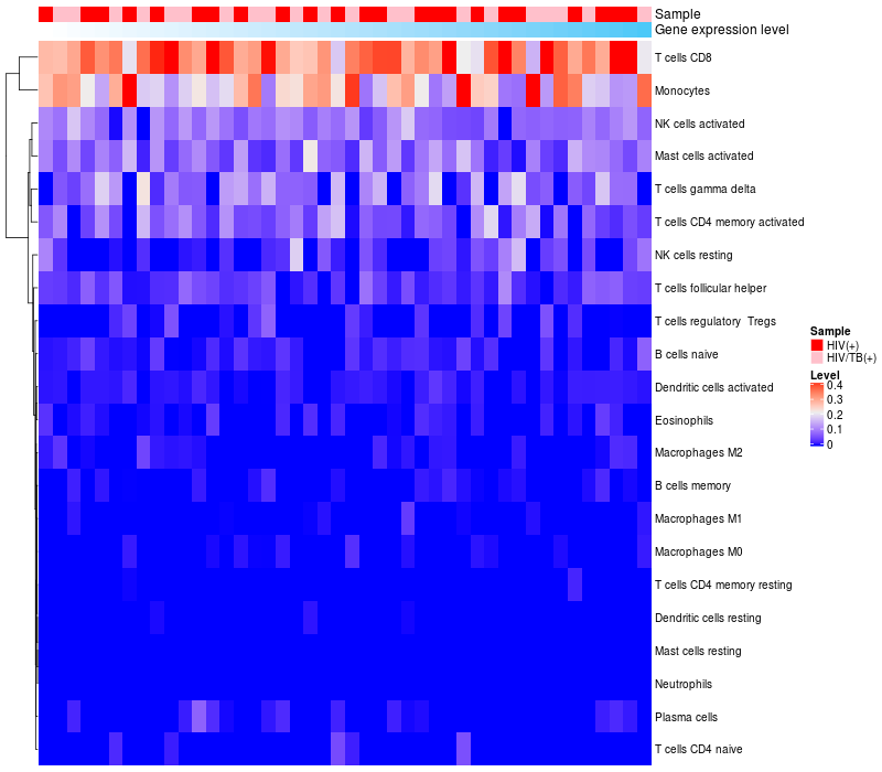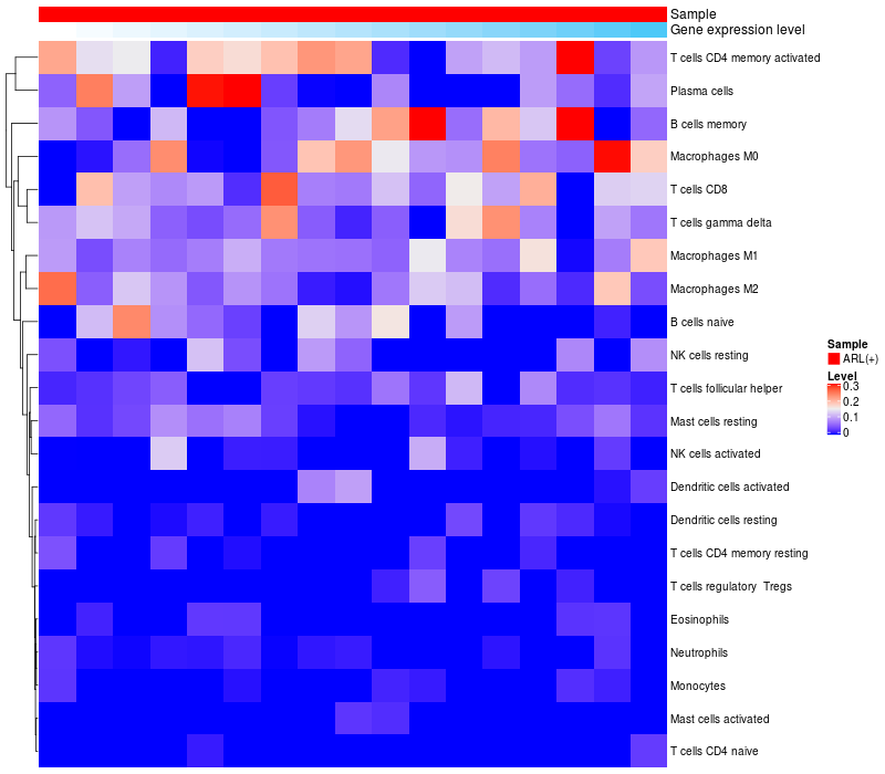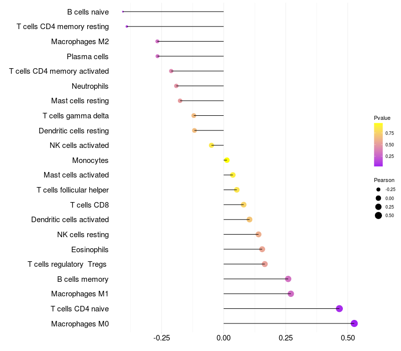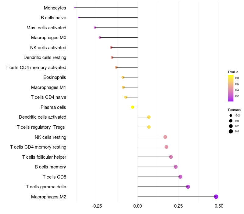 Relationship between gene expression and immune infiltrating cell level