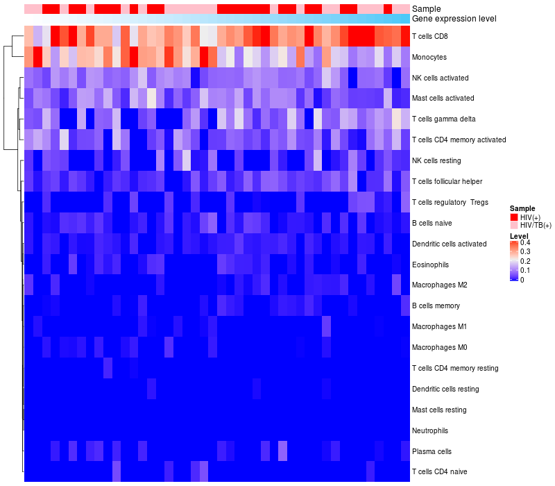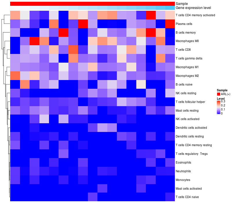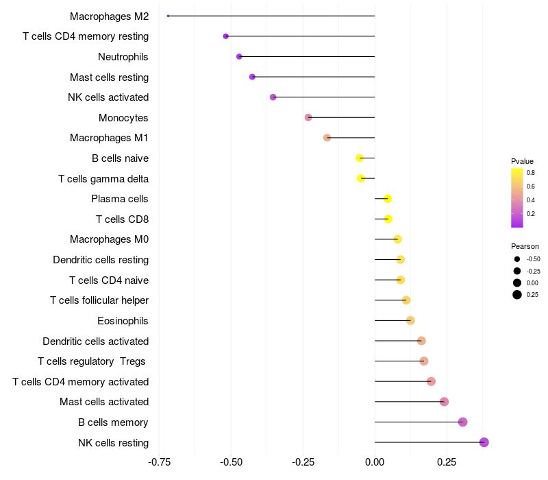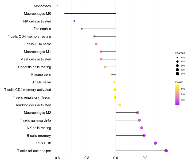 Relationship between gene expression and immune infiltrating cell level