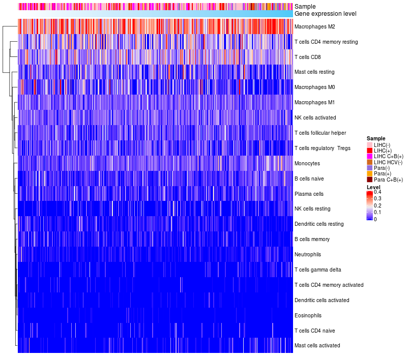 Relationship between gene expression and immune infiltrating cell level