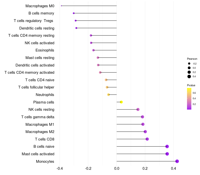 Lollipop of PEMT expression and immune infiltrating cell level correlation result in HBV+ Liver cirrhosis samples
