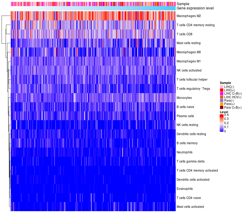 Liver hepatocellular carcinoma HCV (HBV+)(86), Liver hepatocellular carcinoma HCV (HBV-)(19), Liver hepatocellular carcinoma (HBV+)(209), Liver hepatocellular carcinoma (HBV+)(60), Paracancerous HCV (HBV+)(4), Paracancerous (HBV-)(28), Paracancerous (HBV+)(18) |