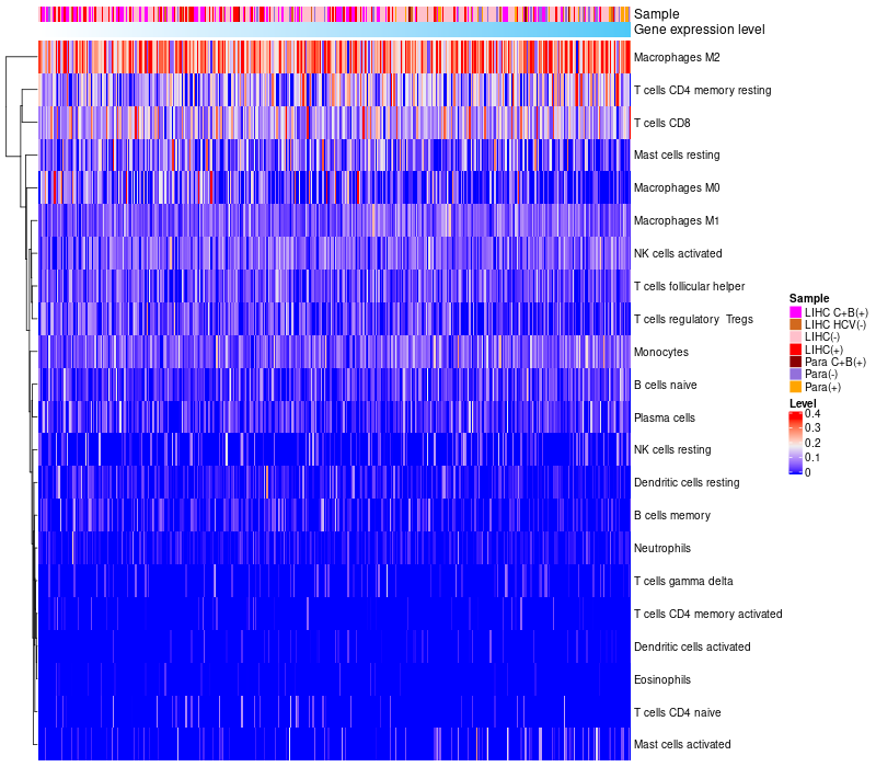 Relationship between gene expression and immune infiltrating cell level