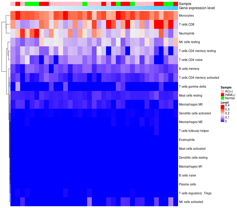 Relationship between gene expression and immune infiltrating cell level