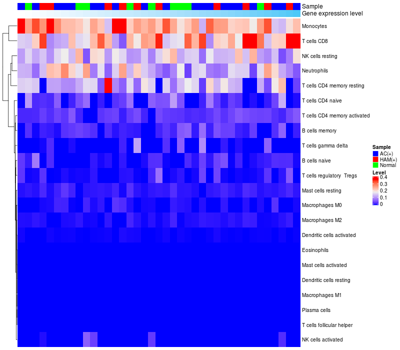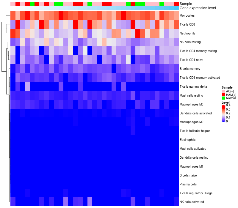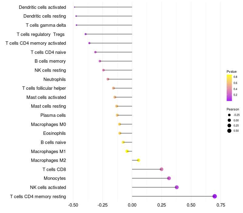 Relationship between gene expression and immune infiltrating cell level
