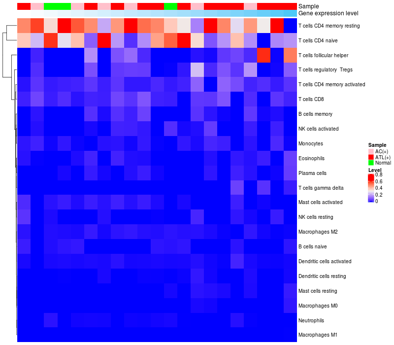 Normal (3), Asymptomatic carriers (HTLV1+)(6), Adult T-cell Leukemia-lymphoma (HTLV1+)(12) |