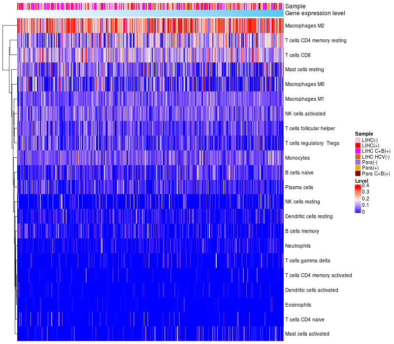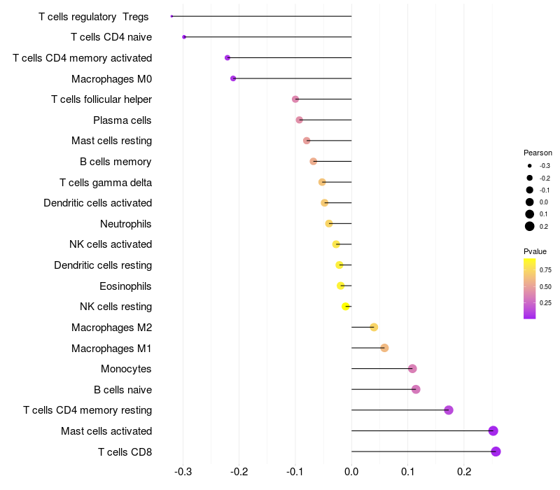 Relationship between gene expression and immune infiltrating cell level