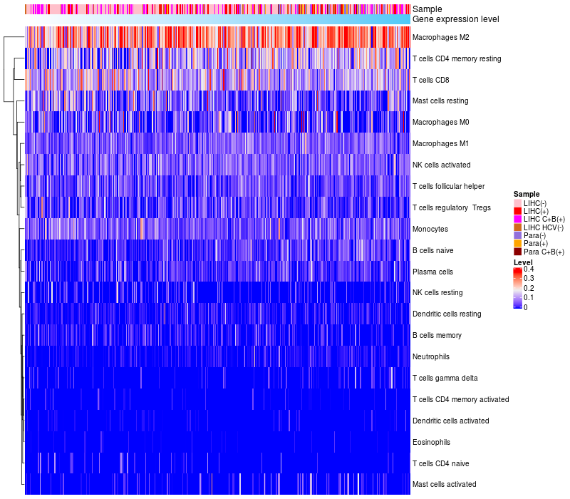 Relationship between gene expression and immune infiltrating cell level