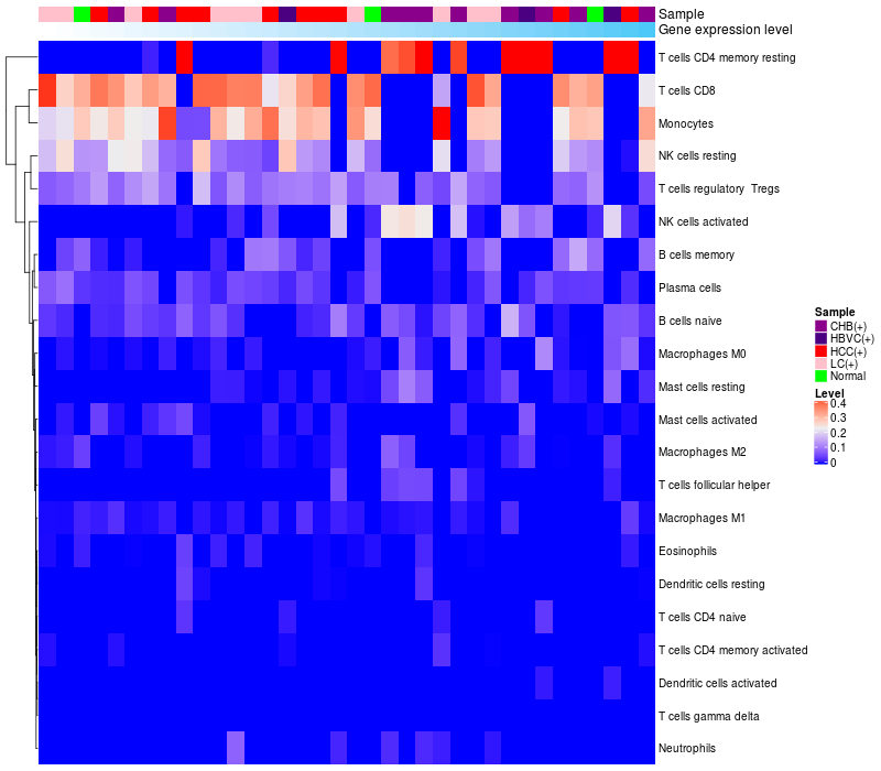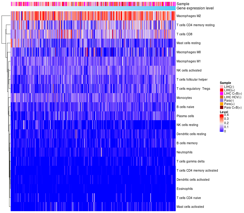Liver hepatocellular carcinoma HCV (HBV+)(86), Liver hepatocellular carcinoma HCV (HBV-)(19), Liver hepatocellular carcinoma (HBV+)(209), Liver hepatocellular carcinoma (HBV+)(60), Paracancerous HCV (HBV+)(4), Paracancerous (HBV-)(28), Paracancerous (HBV+)(18) |