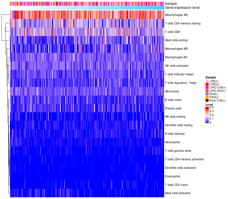 Liver hepatocellular carcinoma HCV (HBV+)(86), Liver hepatocellular carcinoma HCV (HBV-)(19), Liver hepatocellular carcinoma (HBV+)(209), Liver hepatocellular carcinoma (HBV+)(60), Paracancerous HCV (HBV+)(4), Paracancerous (HBV-)(28), Paracancerous (HBV+)(18) |