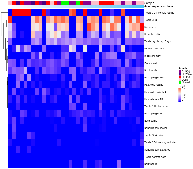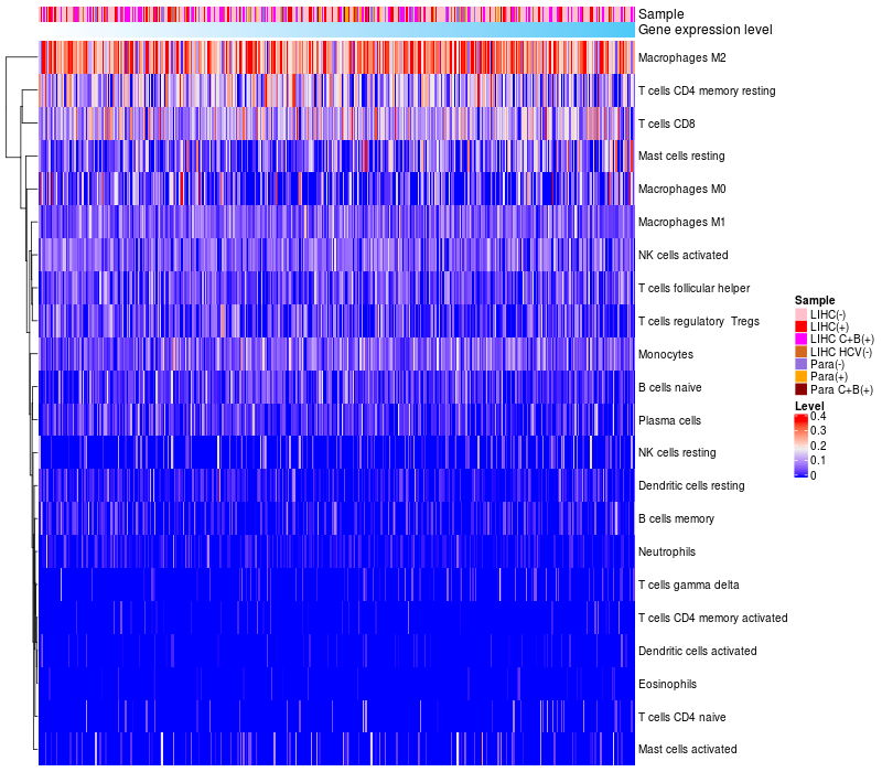 Liver hepatocellular carcinoma HCV (HBV+)(86), Liver hepatocellular carcinoma HCV (HBV-)(19), Liver hepatocellular carcinoma (HBV+)(209), Liver hepatocellular carcinoma (HBV+)(60), Paracancerous HCV (HBV+)(4), Paracancerous (HBV-)(28), Paracancerous (HBV+)(18) |