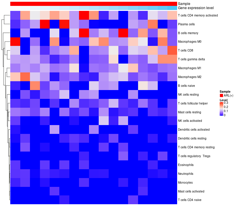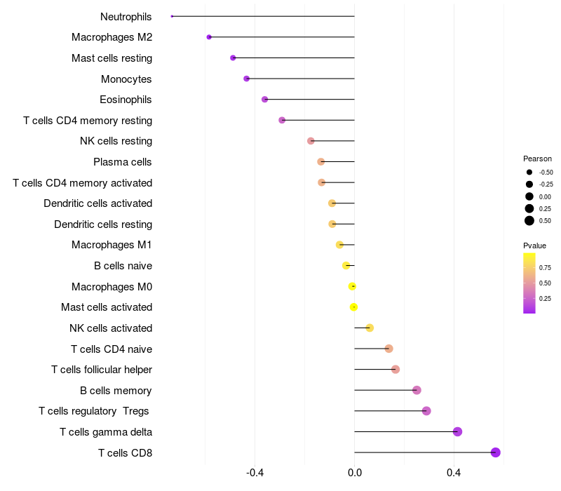 Relationship between gene expression and immune infiltrating cell level