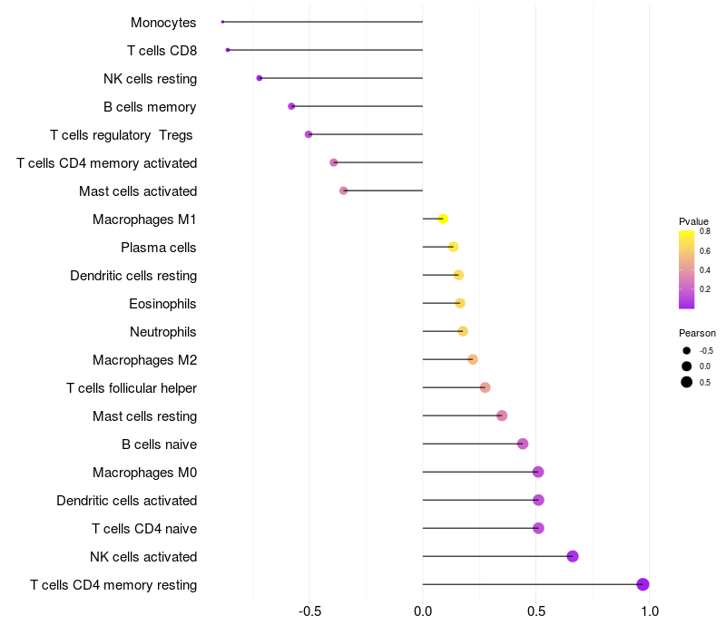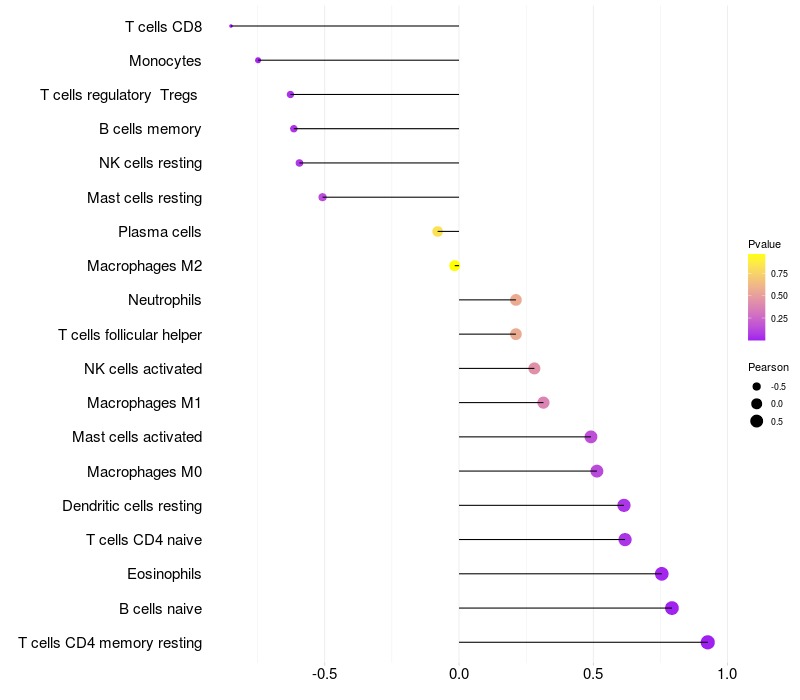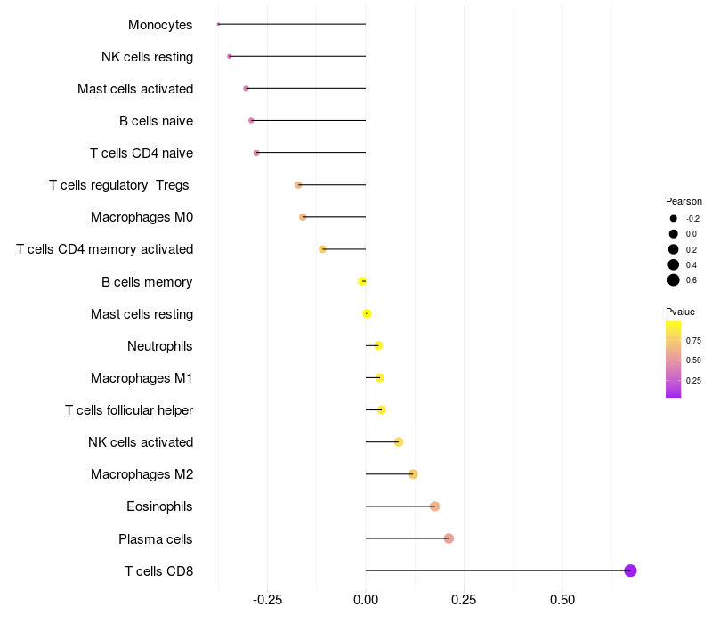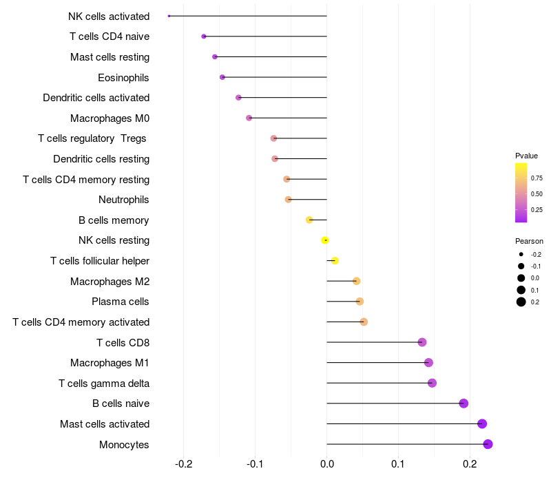 Lollipop of PHGDH expression and immune infiltrating cell level correlation result in HBV+ Liver cirrhosis samples