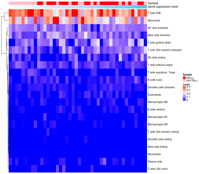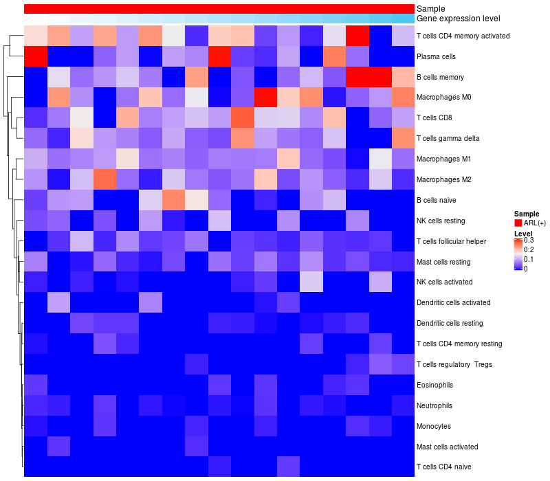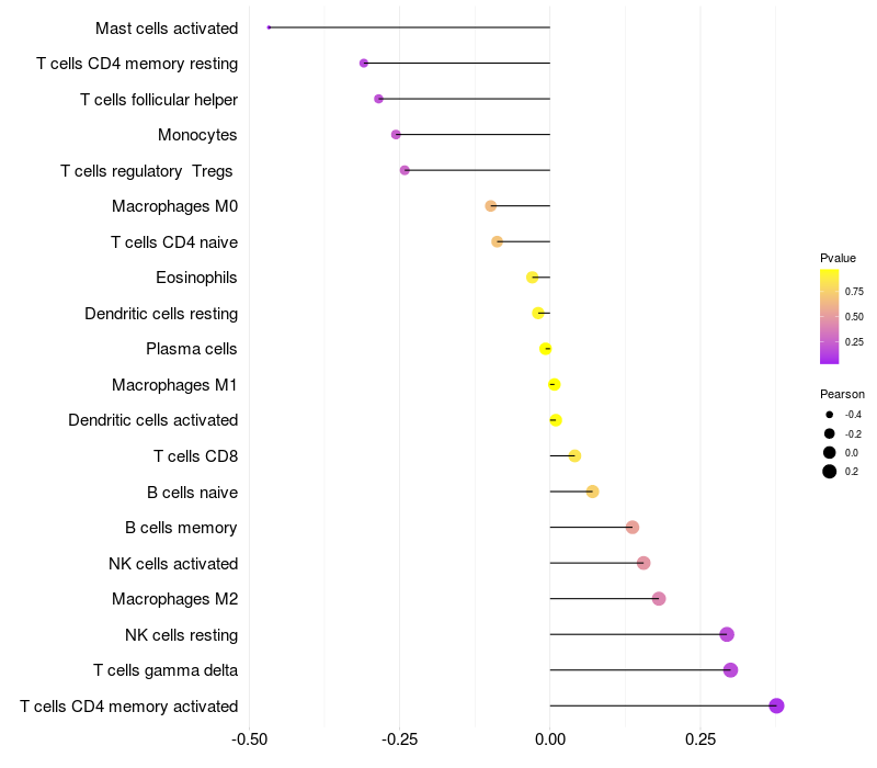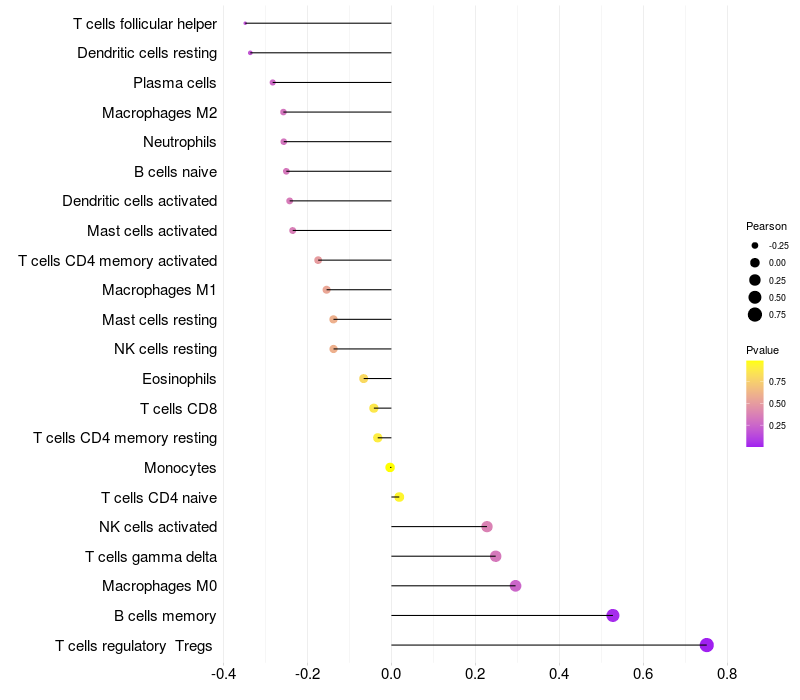Relationship between gene expression and immune infiltrating cell level