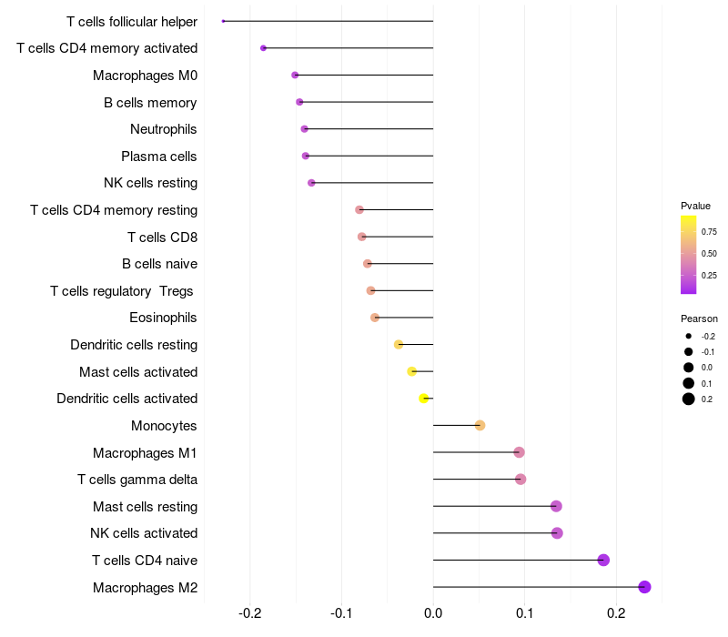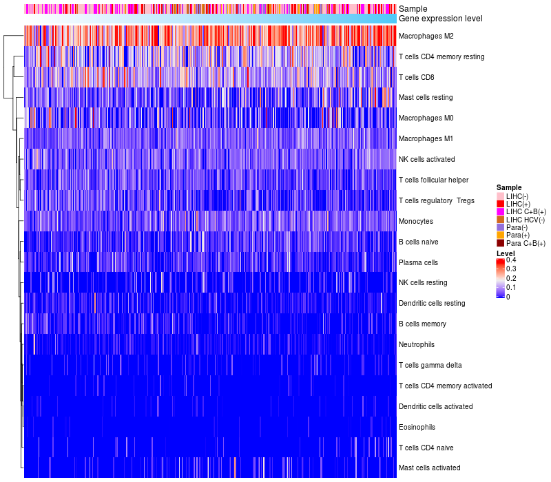 Relationship between gene expression and immune infiltrating cell level