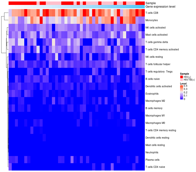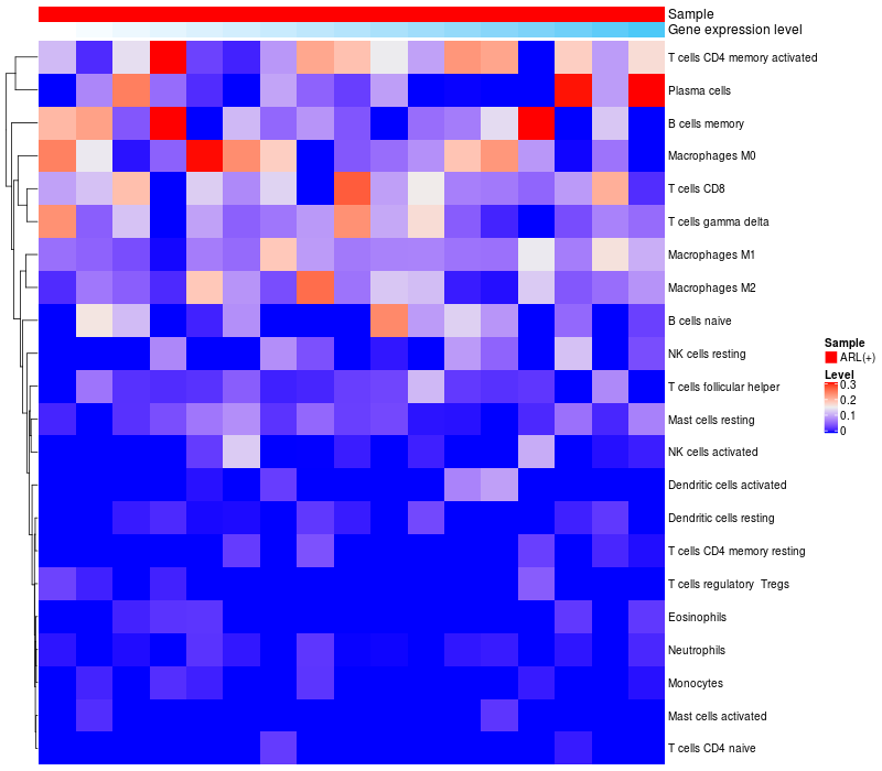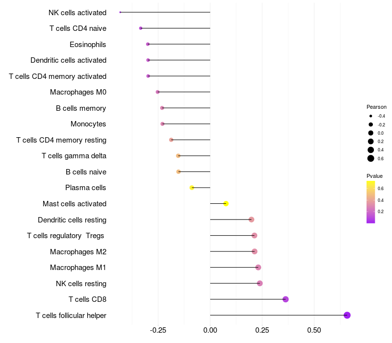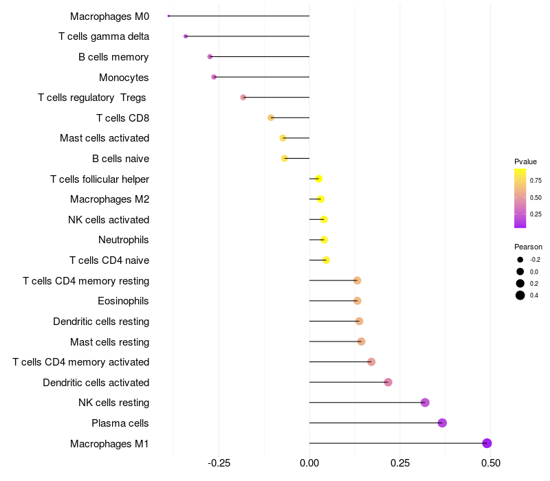 Relationship between gene expression and immune infiltrating cell level