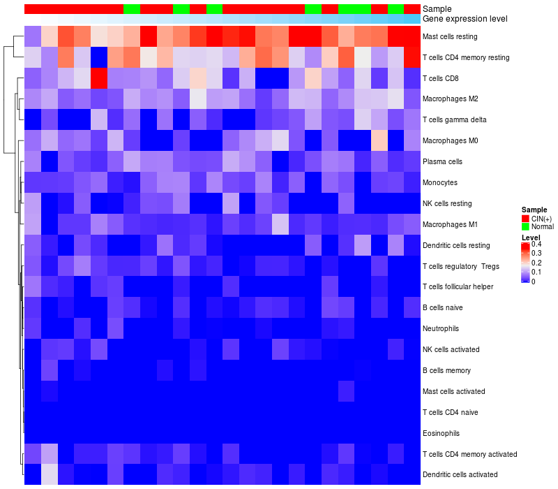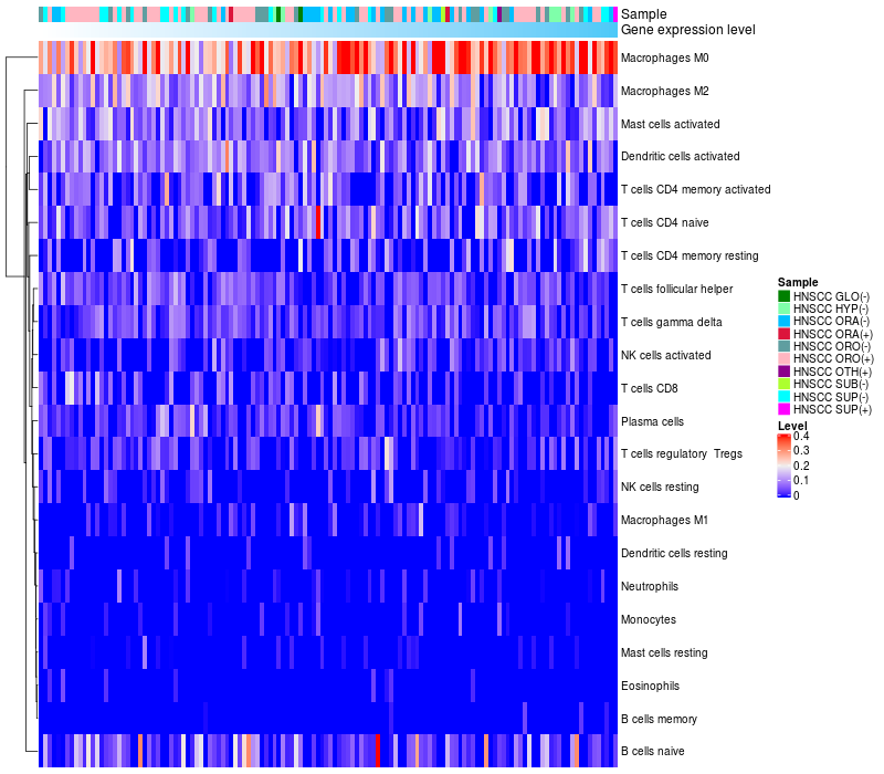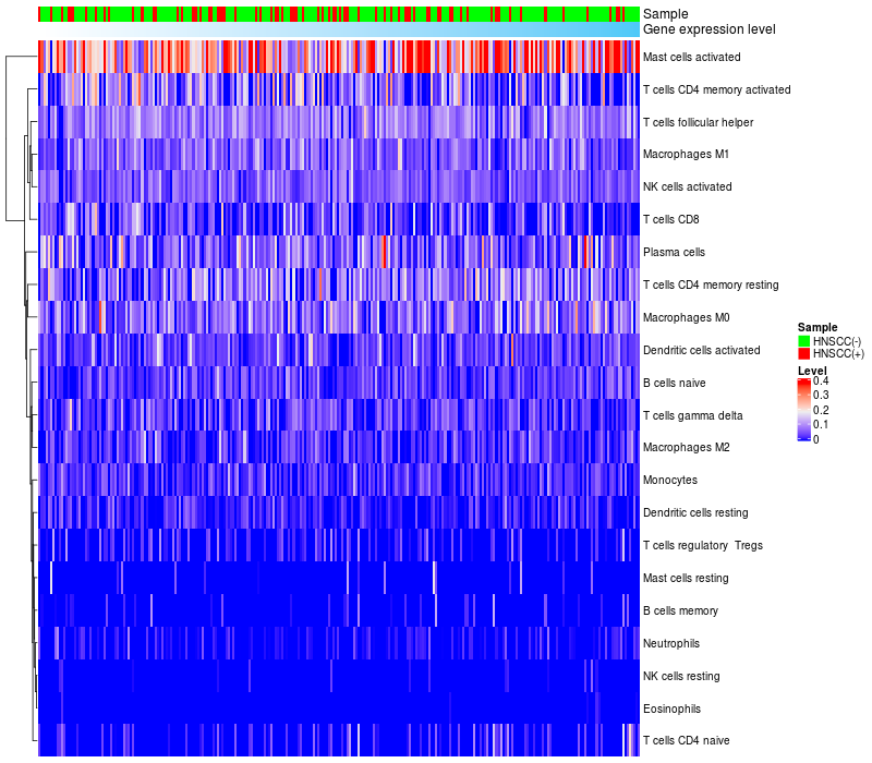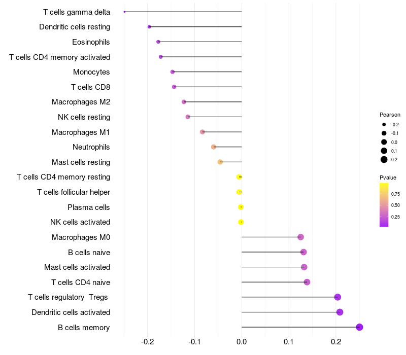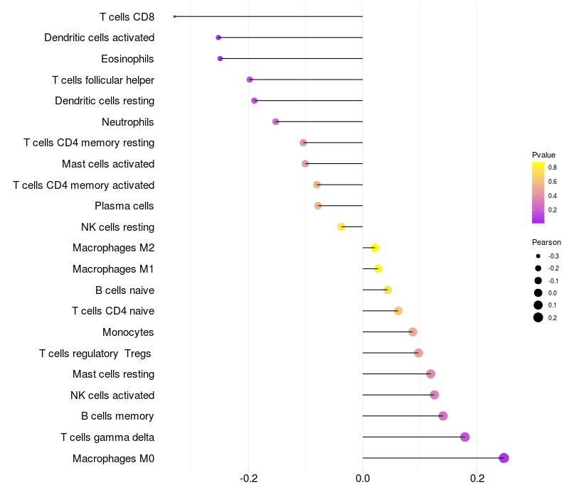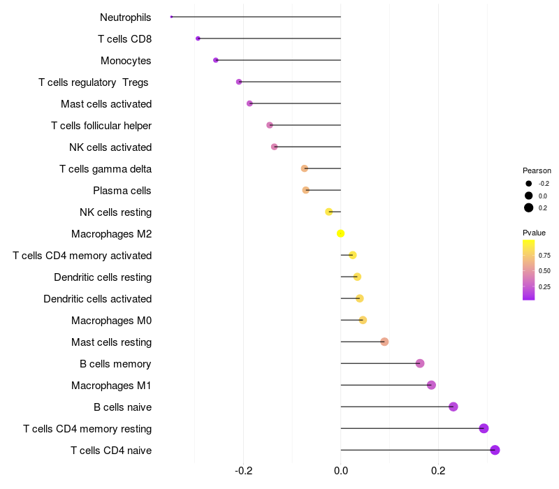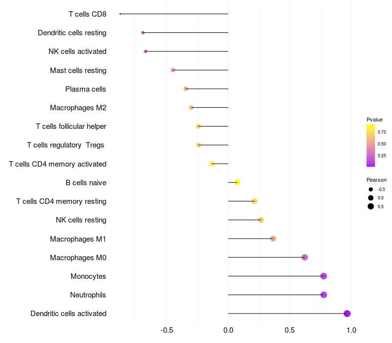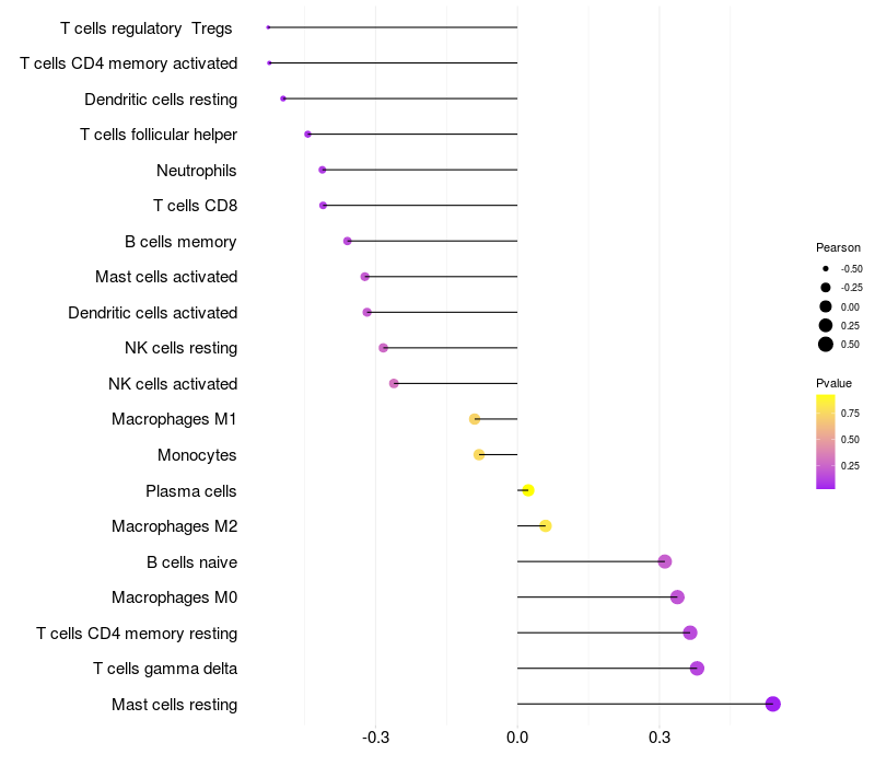 Lollipop of PHLPP2 expression and immune infiltrating cell level correlation result in HPV+ samples