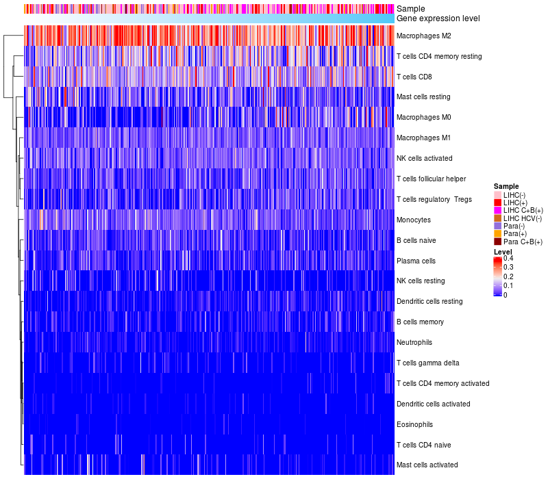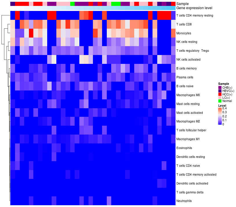 Relationship between gene expression and immune infiltrating cell level