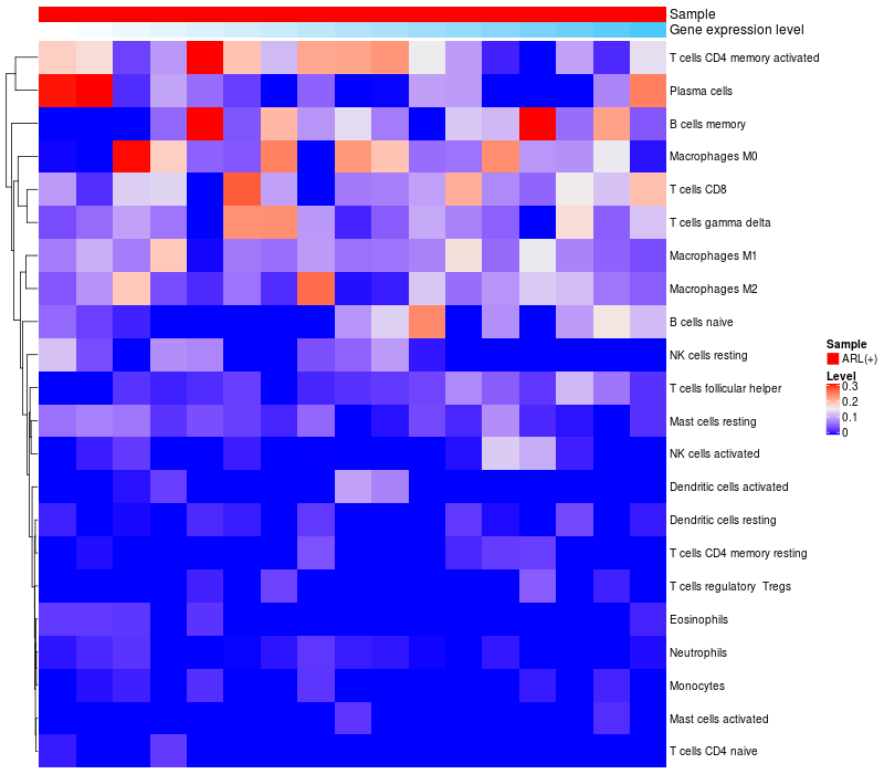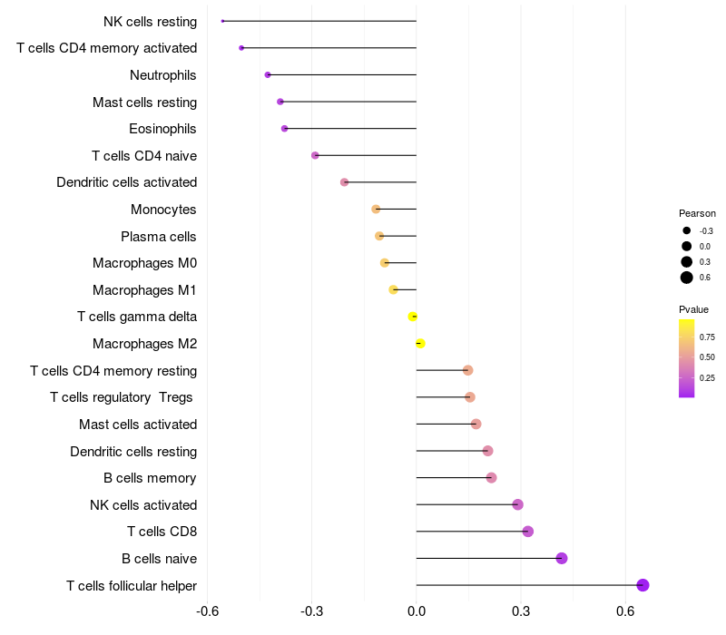 Relationship between gene expression and immune infiltrating cell level