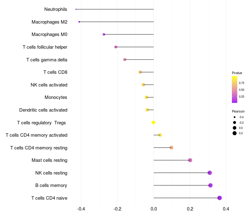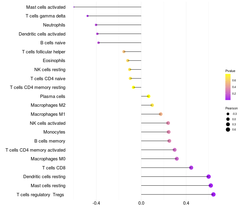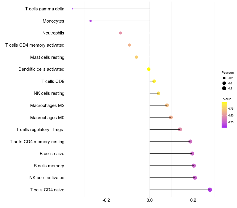 Lollipop of PICK1 expression and immune infiltrating cell level correlation result in HTLV1+ samples