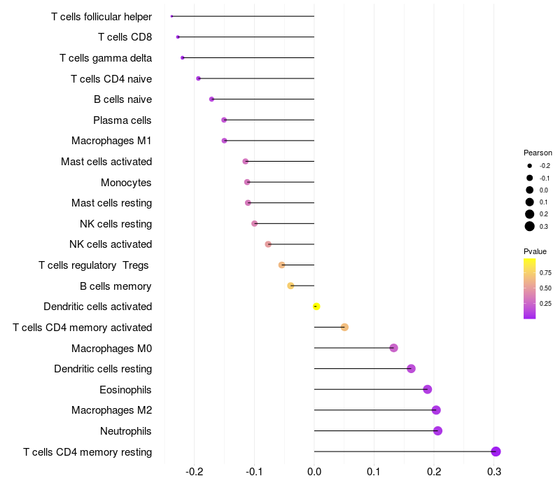 Lollipop of PIK3CB expression and immune infiltrating cell level correlation result in HBV+ samples