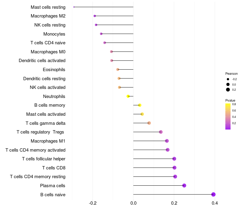 Lollipop of PIK3CD expression and immune infiltrating cell level correlation result in HBV+ samples