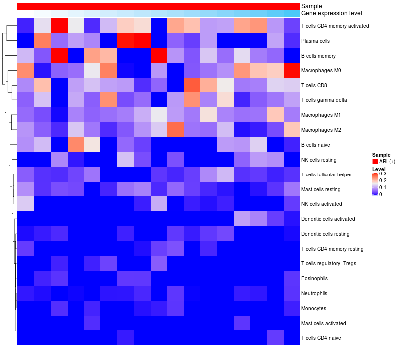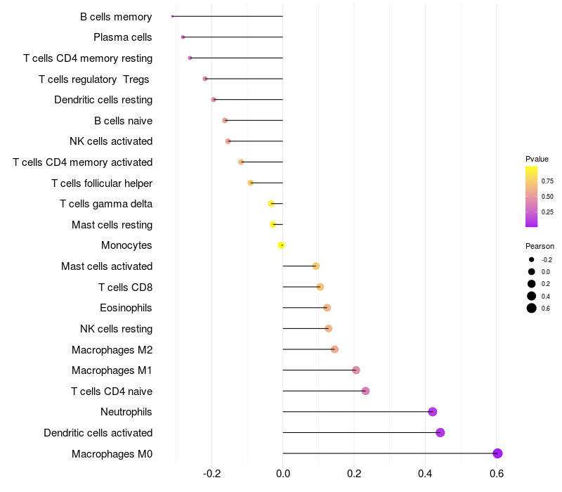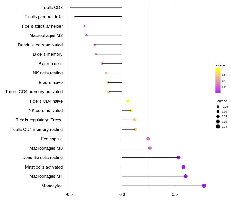 Relationship between gene expression and immune infiltrating cell level
