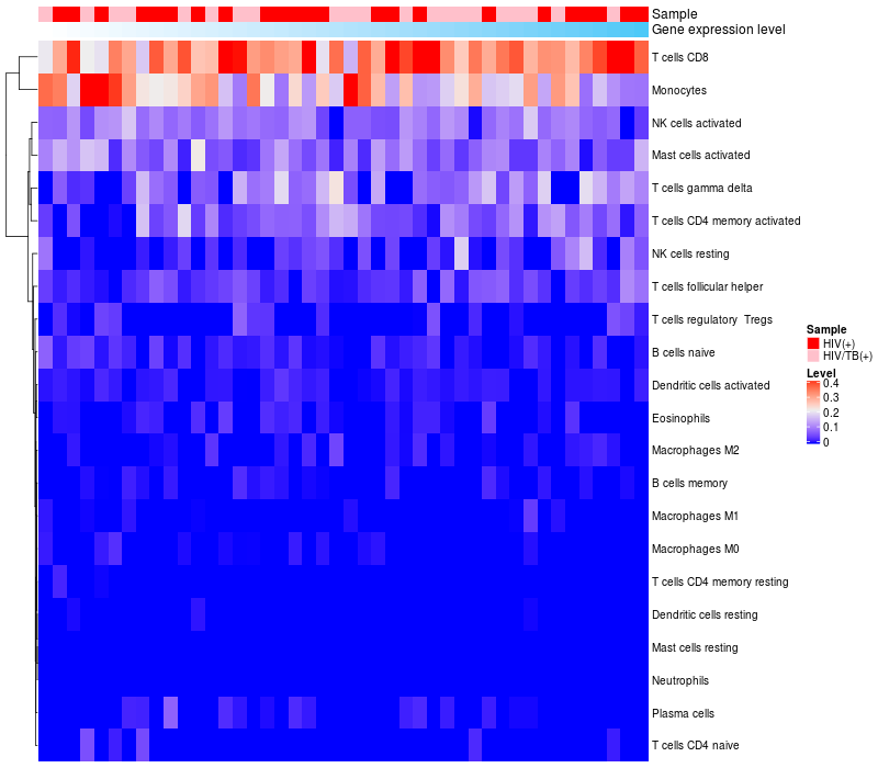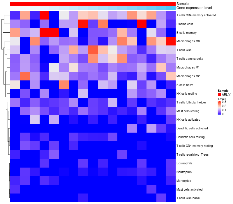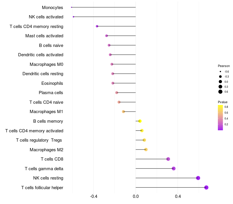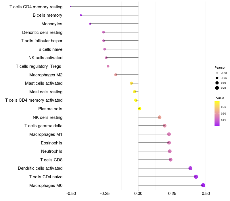 Relationship between gene expression and immune infiltrating cell level