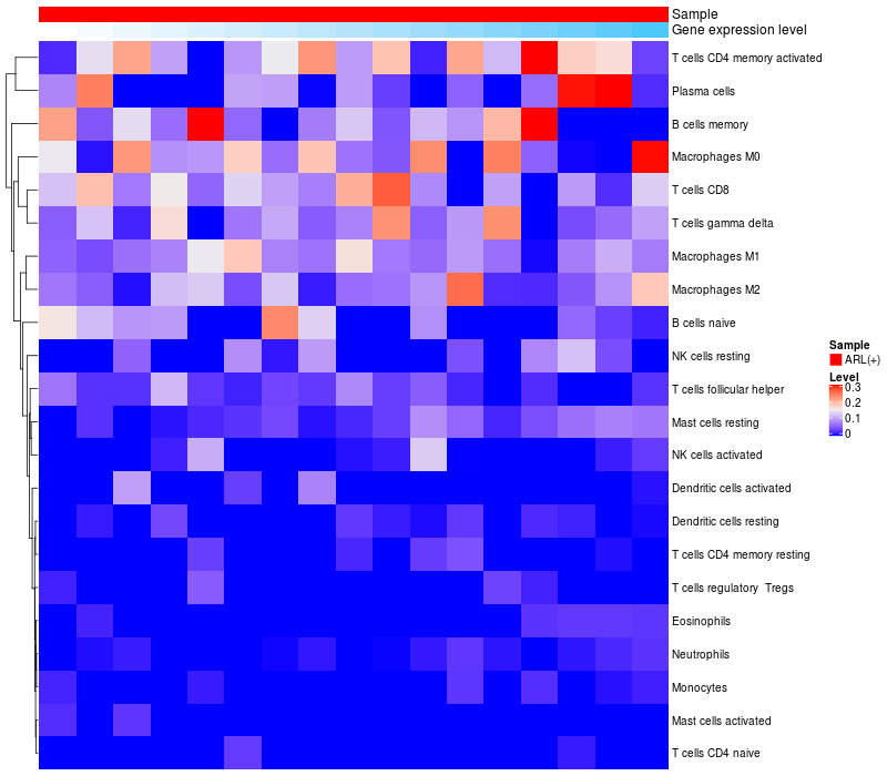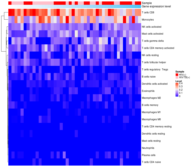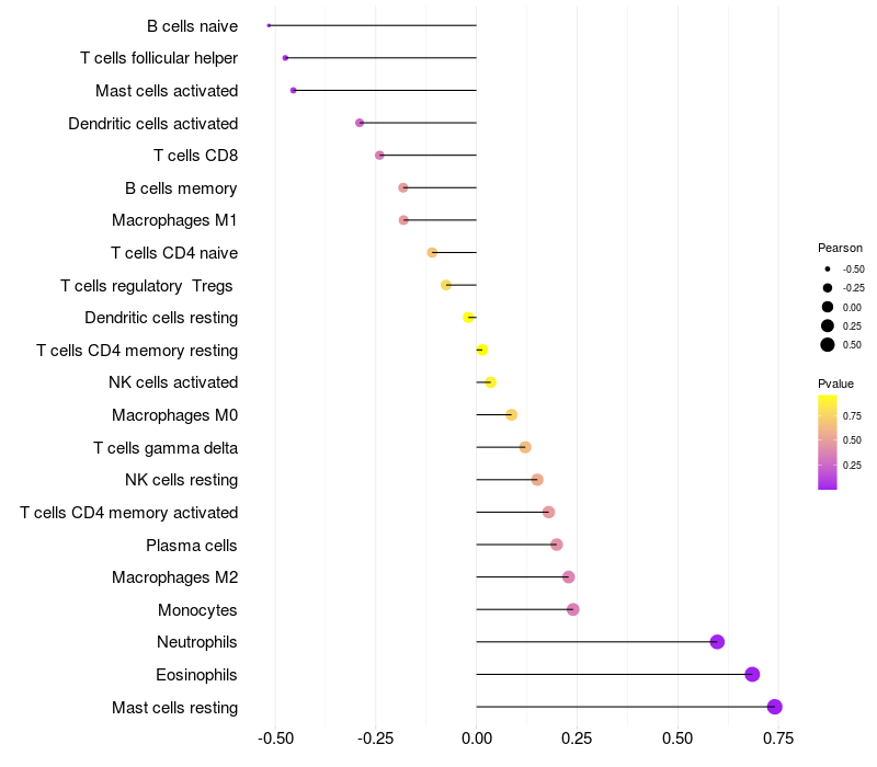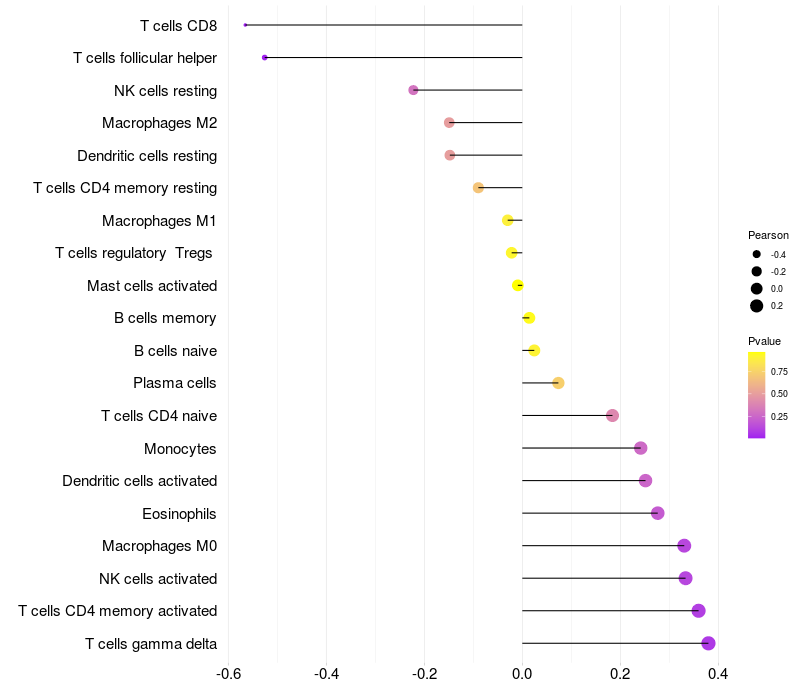 Relationship between gene expression and immune infiltrating cell level