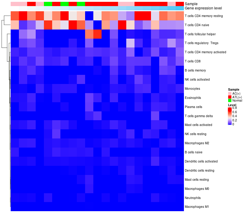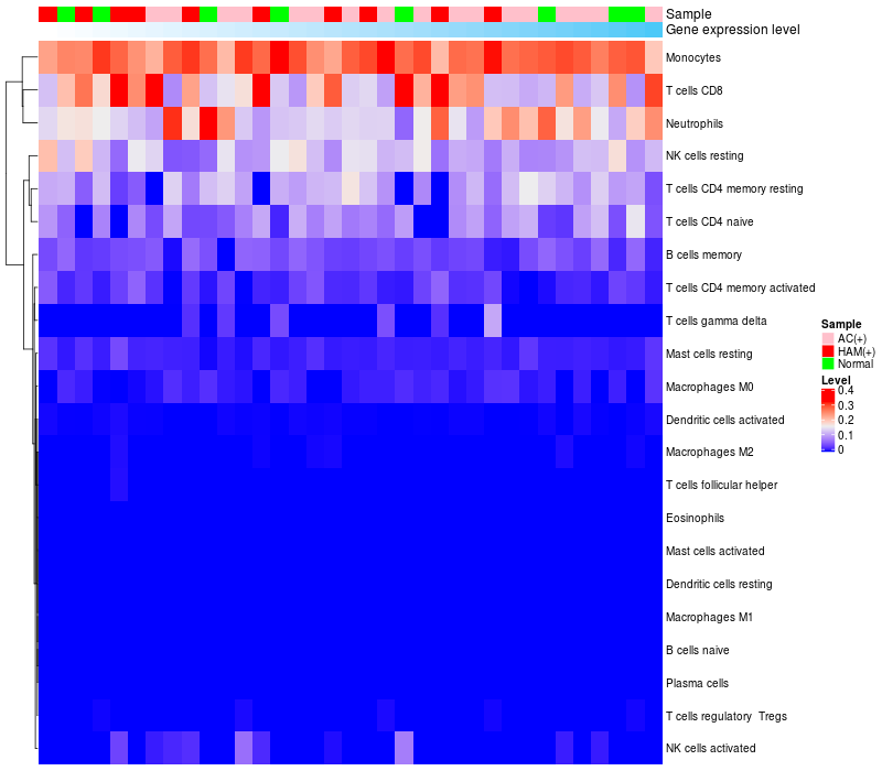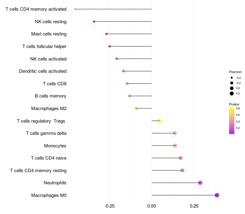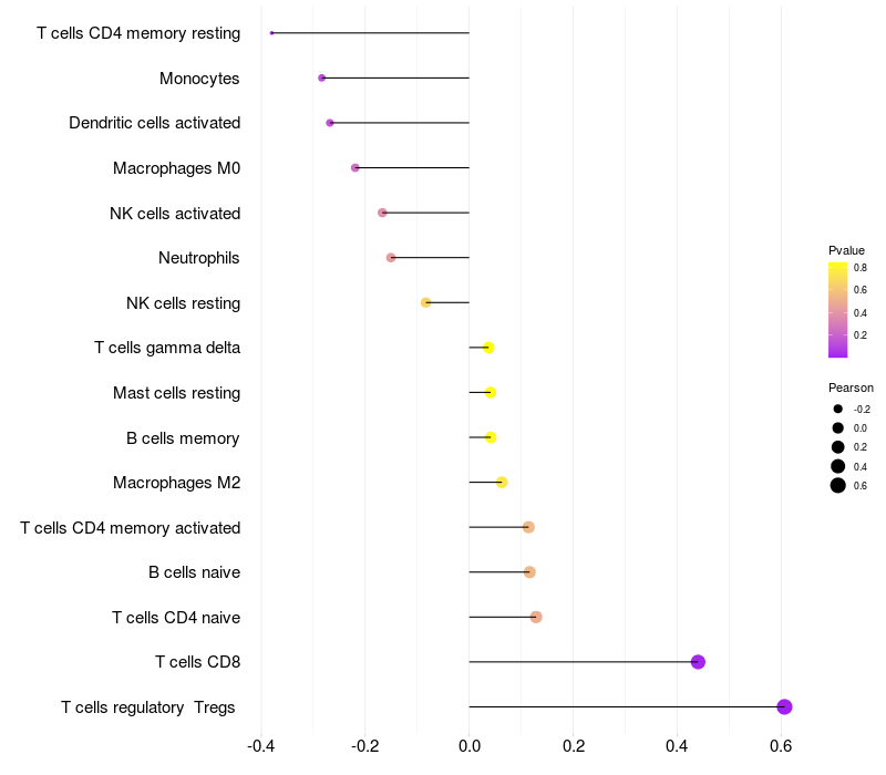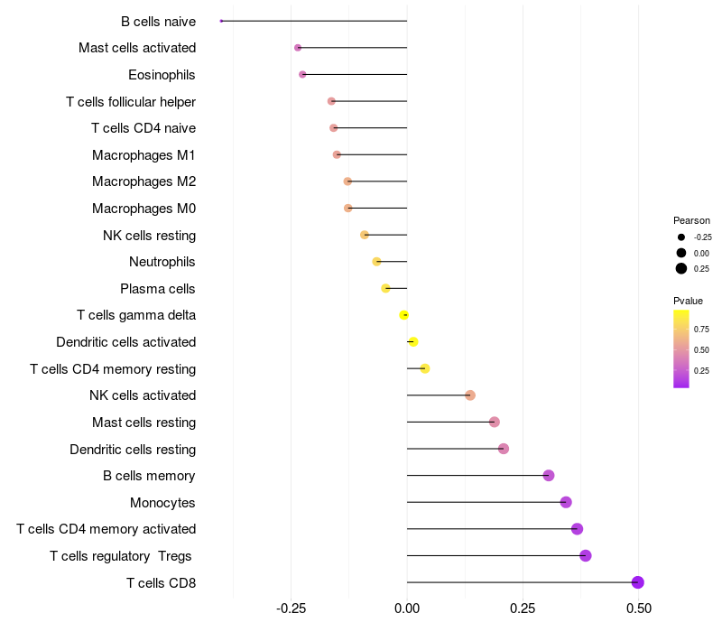 Relationship between gene expression and immune infiltrating cell level