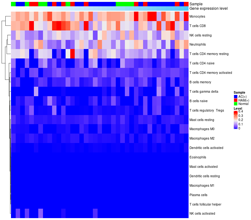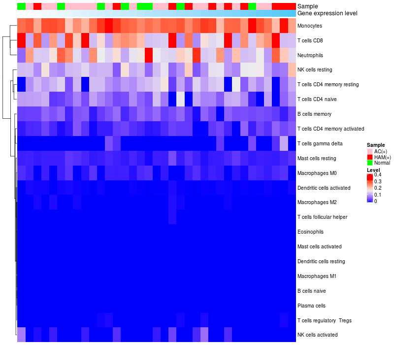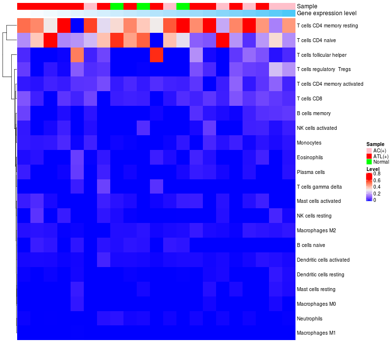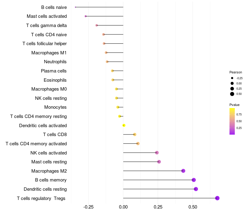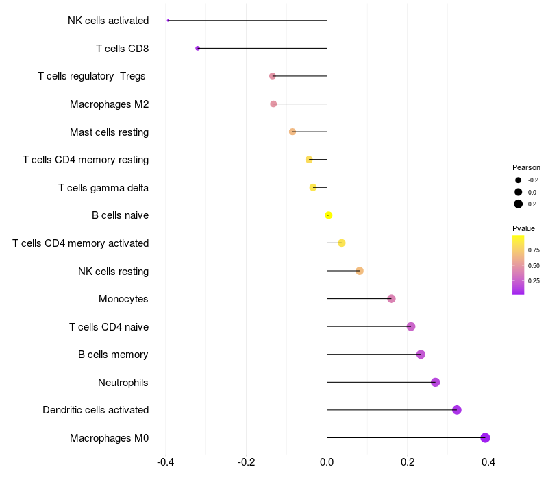 Lollipop of PLCB3 expression and immune infiltrating cell level correlation result in HTLV1+ samples