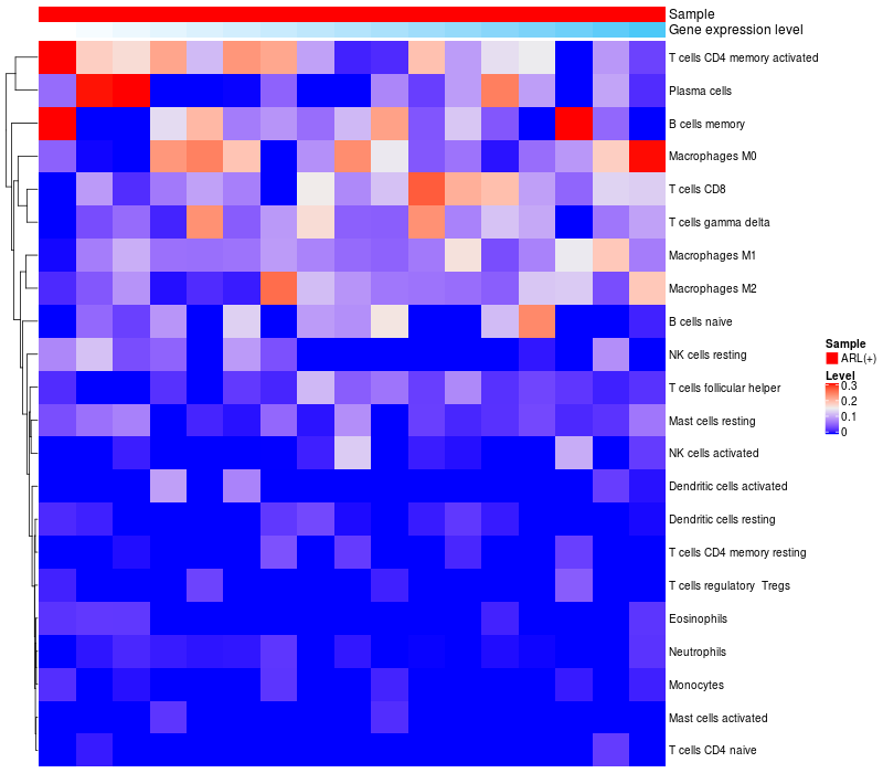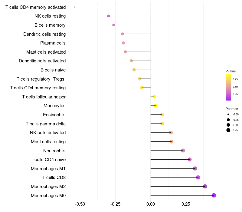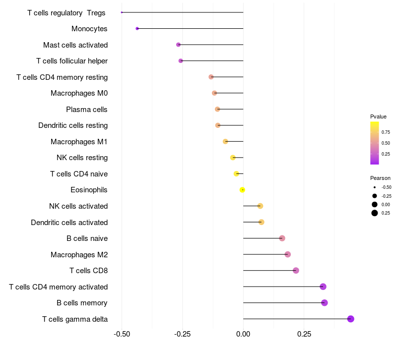 Relationship between gene expression and immune infiltrating cell level