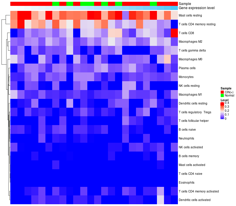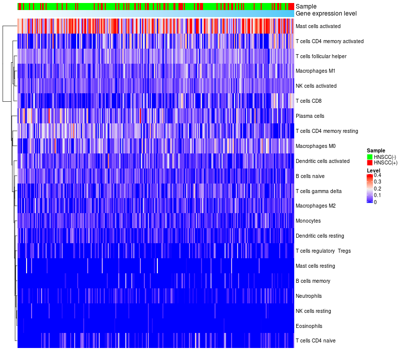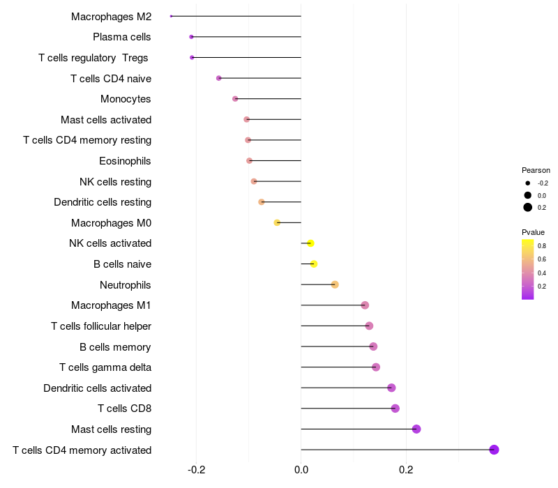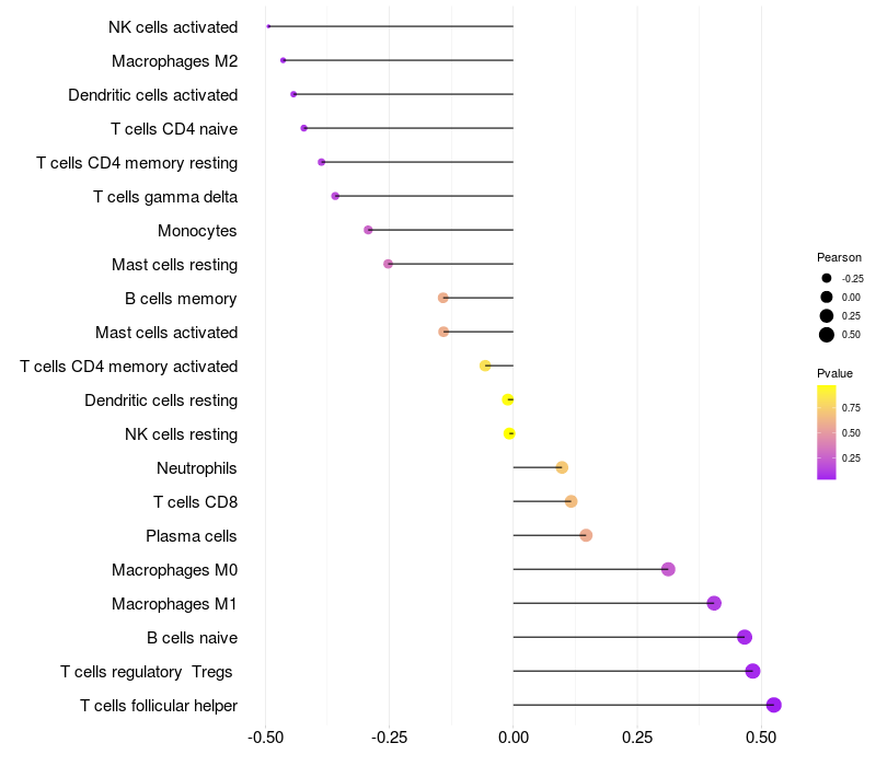 Lollipop of PLEKHF1 expression and immune infiltrating cell level correlation result in HPV+ samples